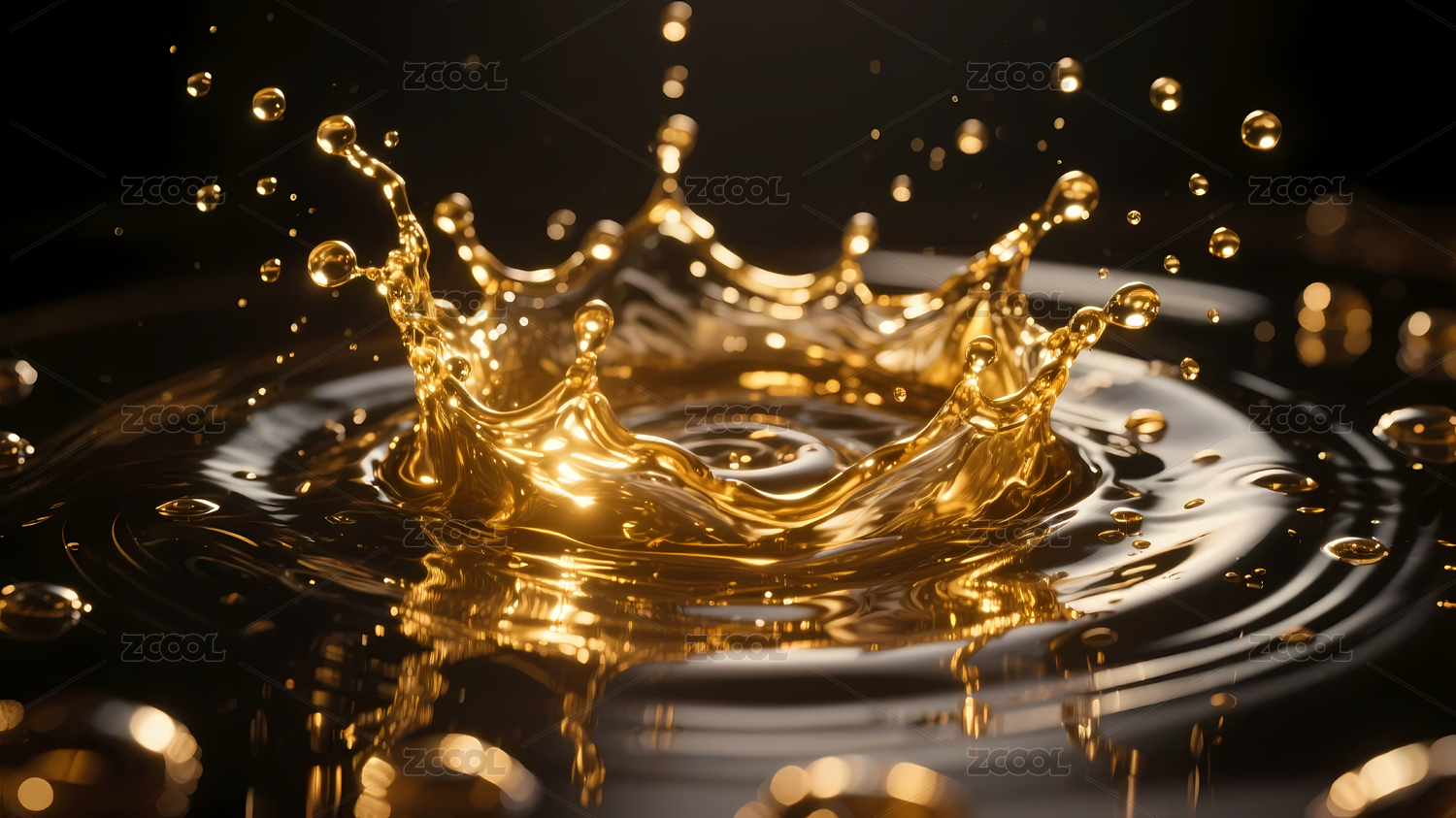 水滴,金色,液体,飞溅,水花,流动,动态,波纹,涟漪,表面张力