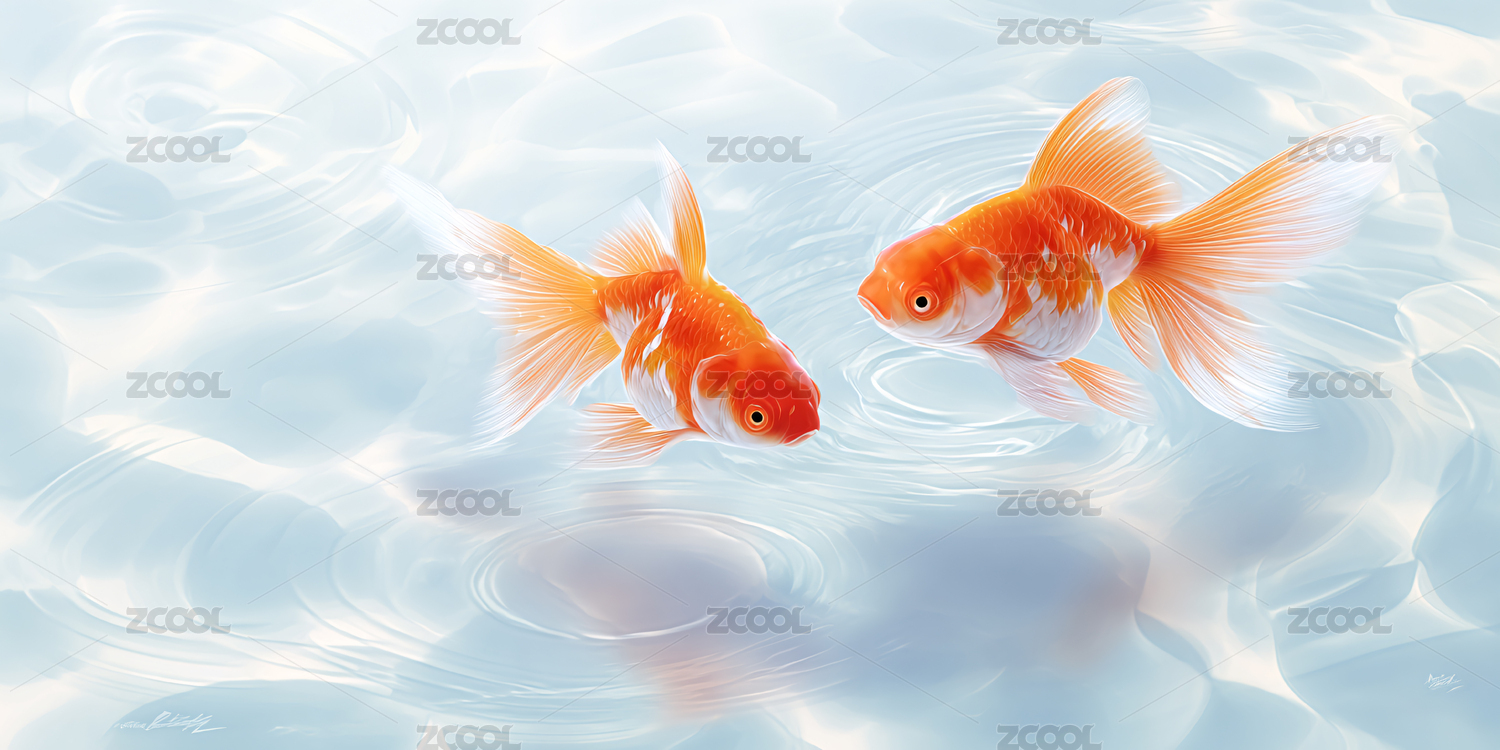 金鱼,水波,水纹,观赏鱼,游动,红色,金色,波光粼粼,宁静,优雅