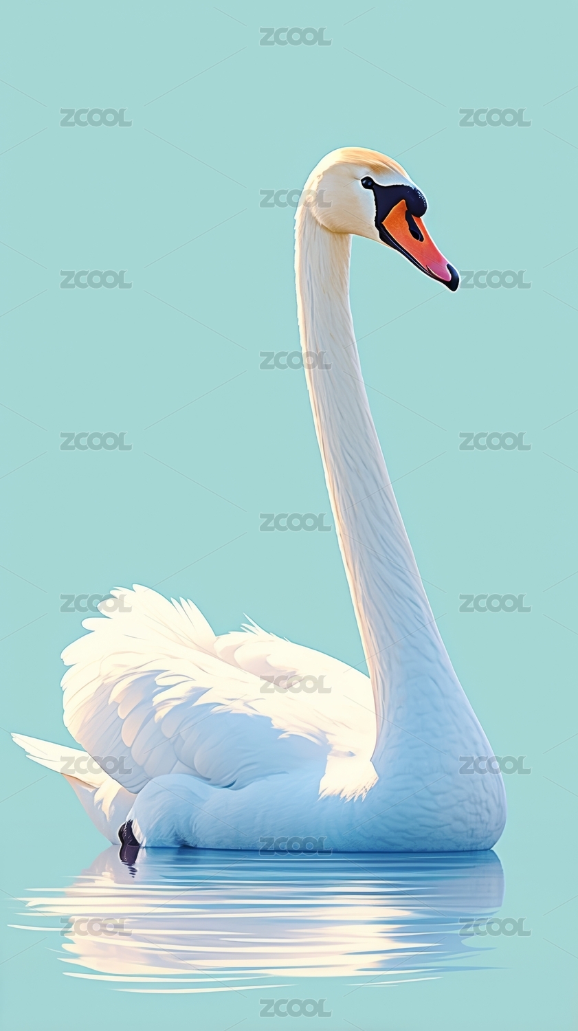 写实插画动物白天鹅