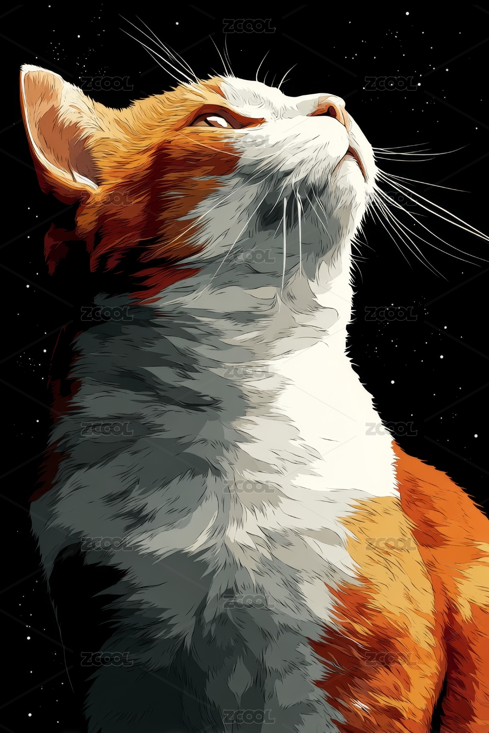 梦幻一只仰着脸的宠物猫3D立体卡通插画