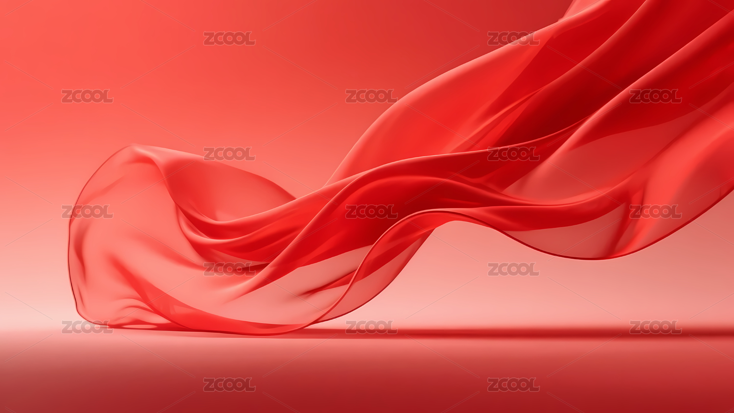 红色绸缎与波浪曲线
