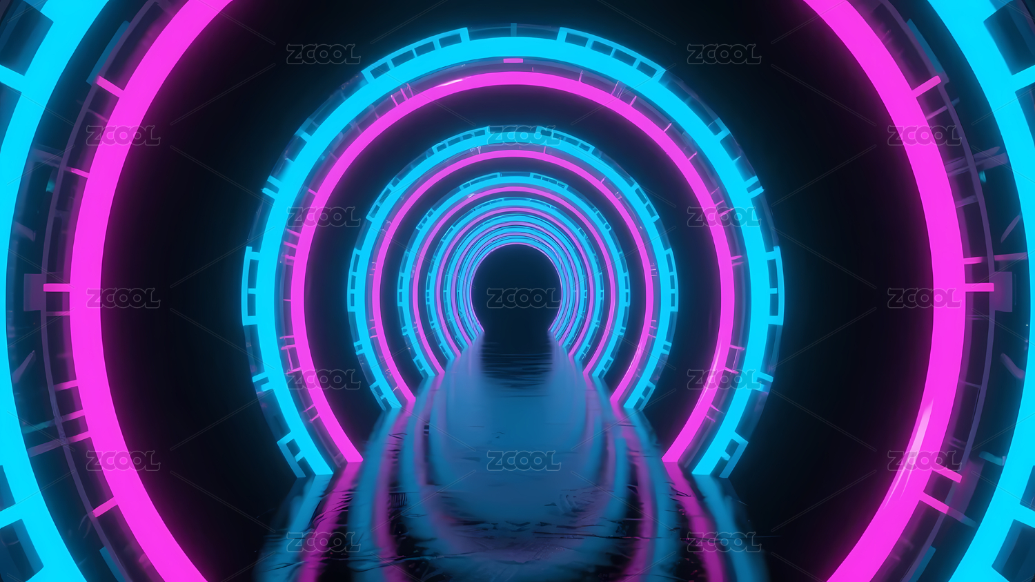 主体,背景,粉色,蓝色,圆形,光带,霓虹,隧道,石质,冷色