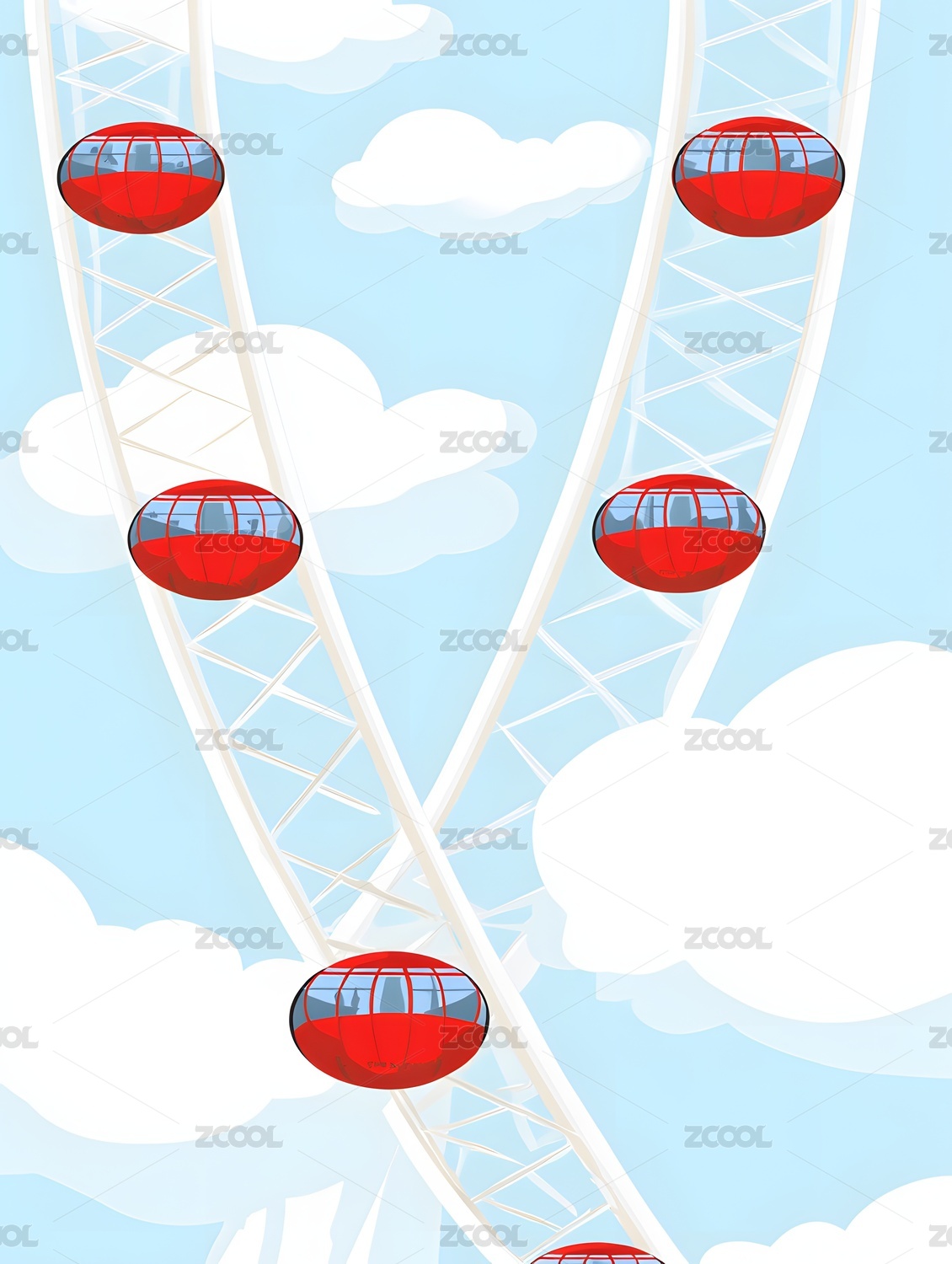 摩天轮,插画,卡通,蓝天,白云,游乐,设施,童趣,风景,艺术
