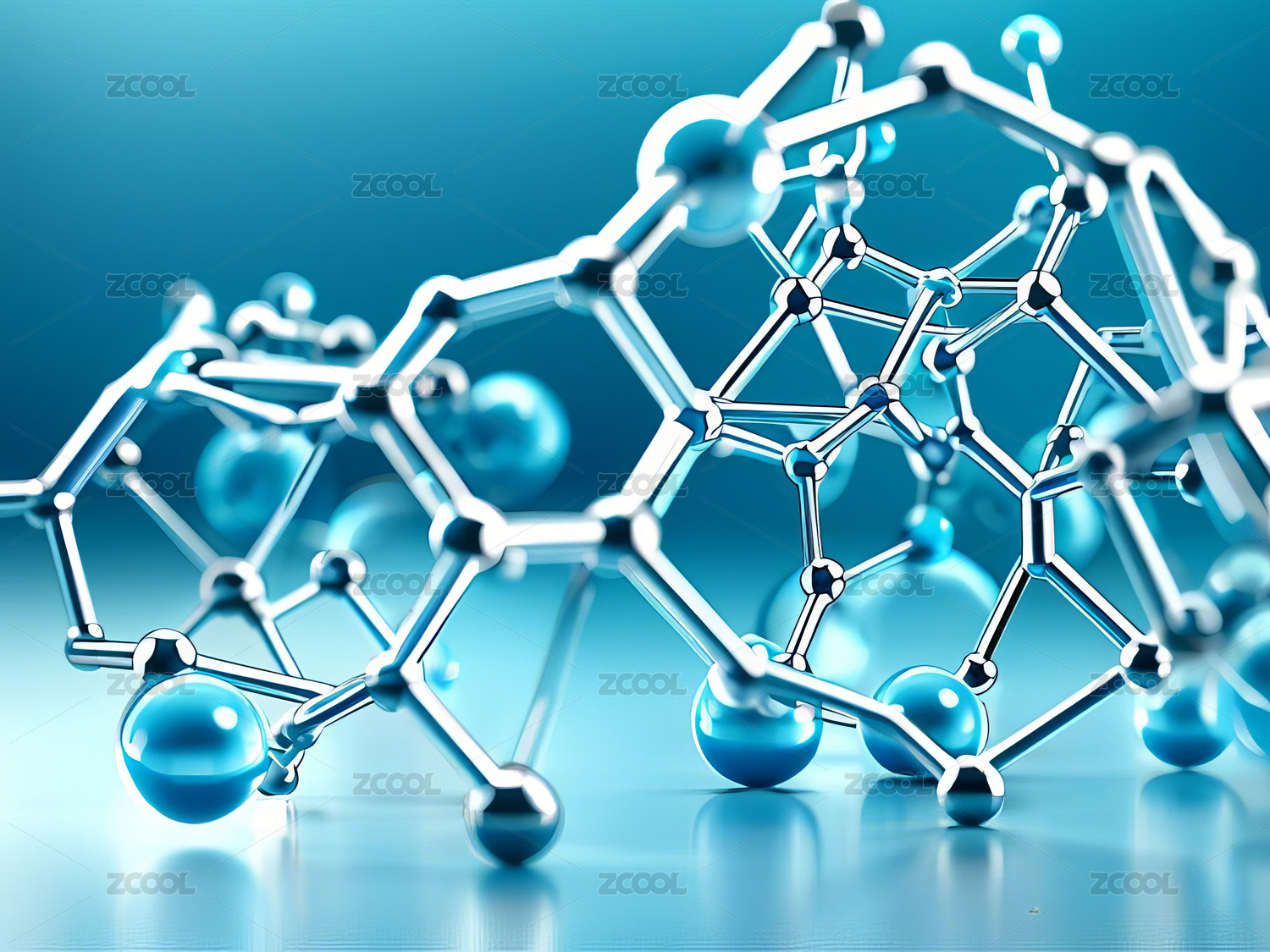 蓝色背景下的分子结构特写