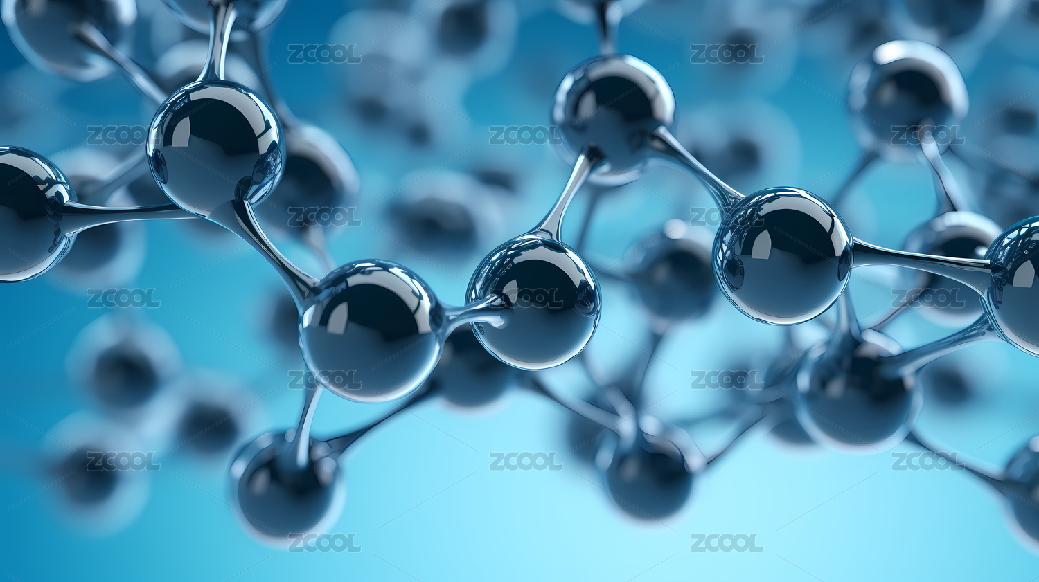 蓝色背景下的金属分子结构