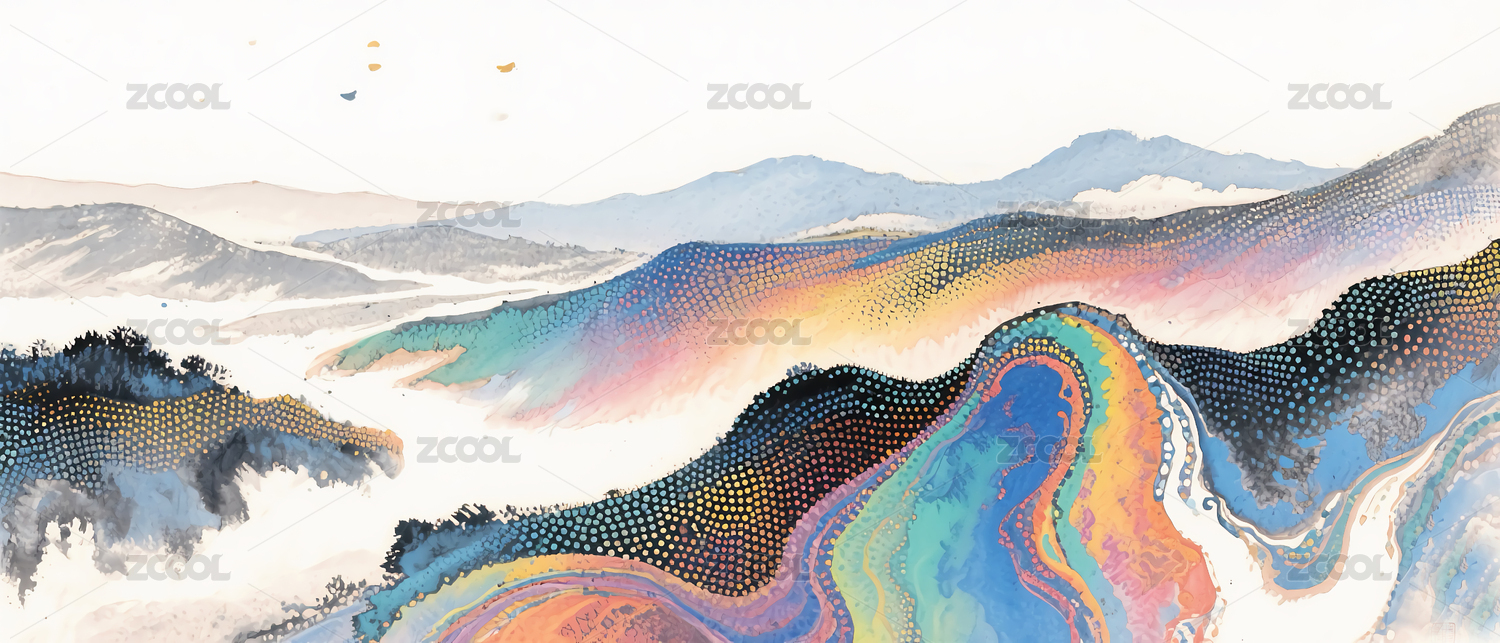抽象彩色山景图
