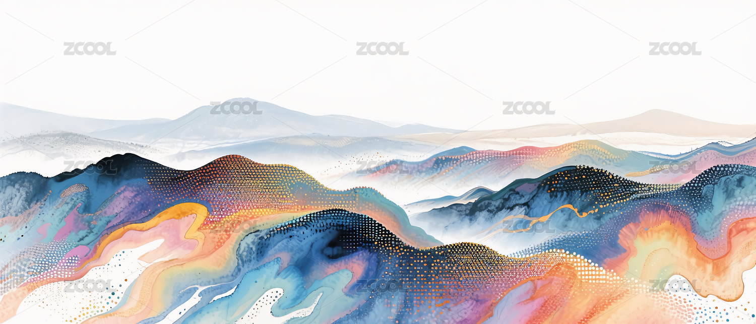 梦幻水彩山峦图