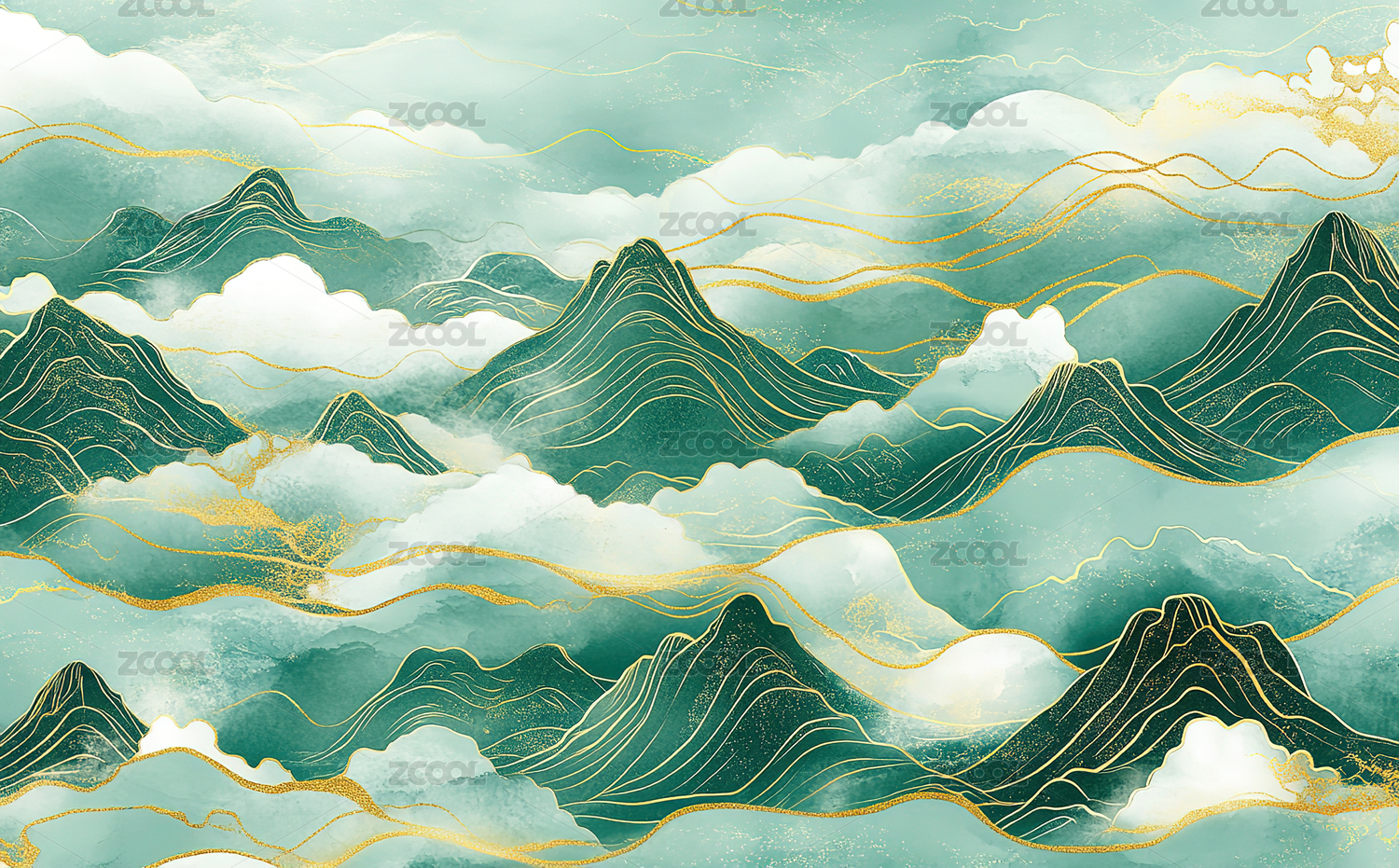 绿金色国风山水艺术背景