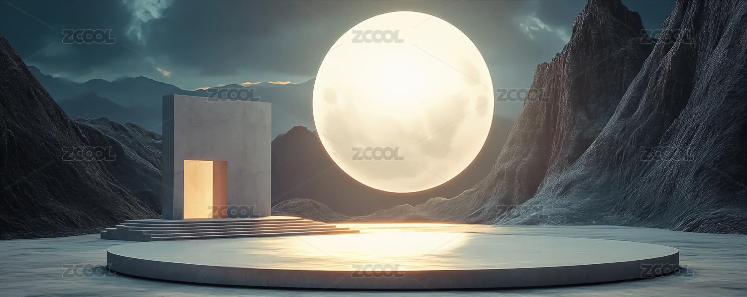 拱门,建筑,场景,月光,满月,背景,高山,户外,购物节,节日
