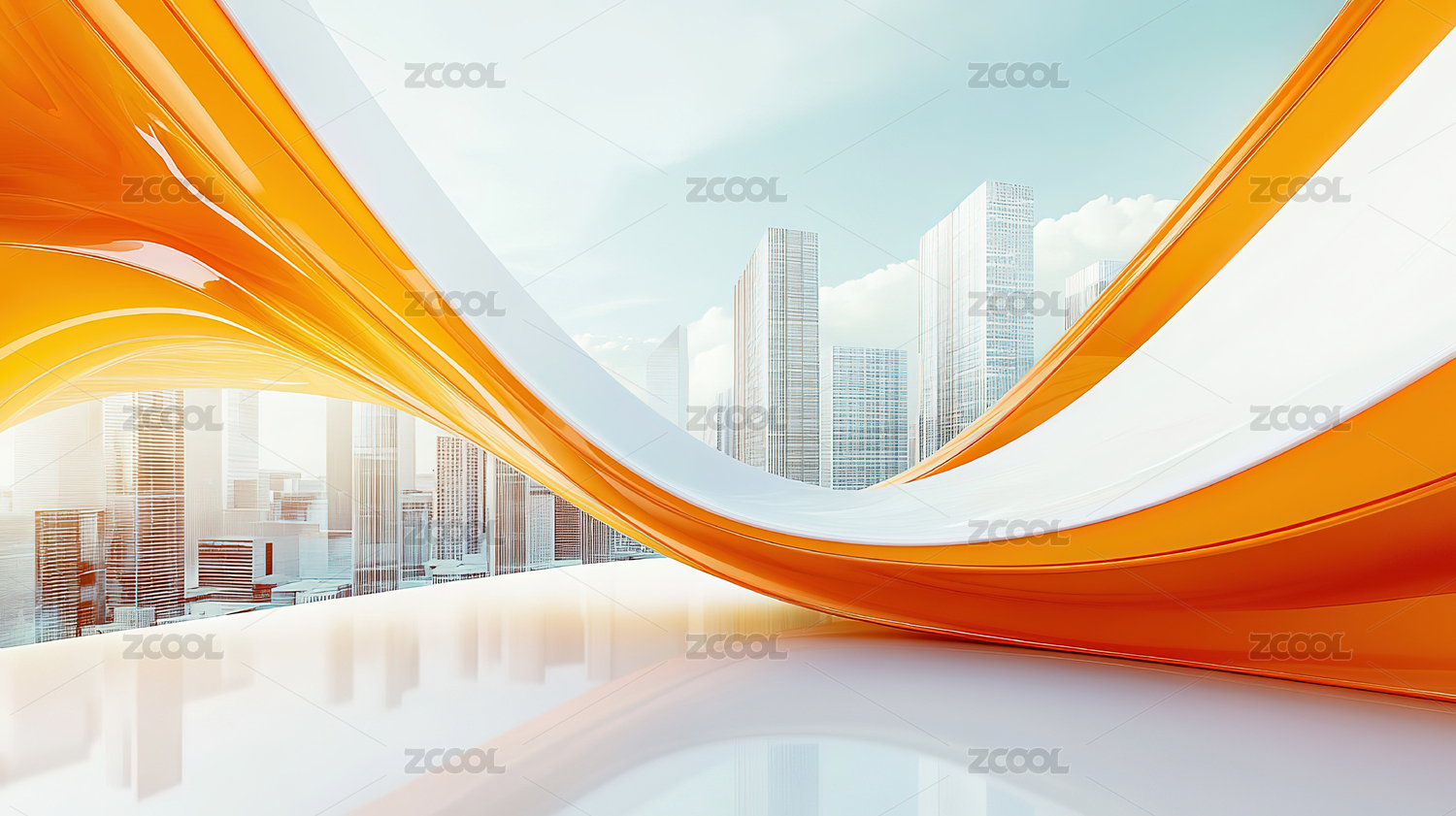 现代城市与橙色曲线的抽象组合