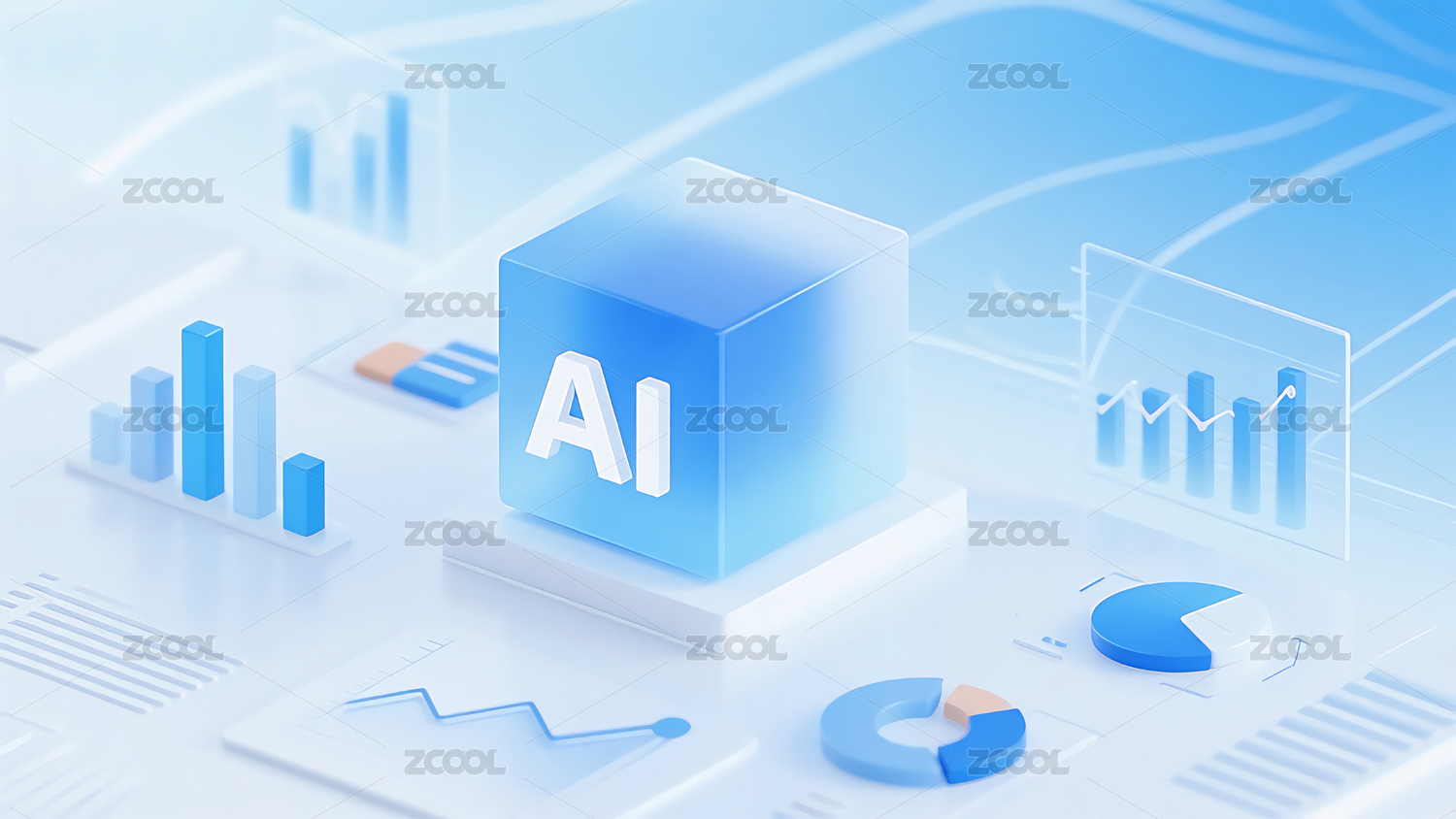 人工智能,大数据,模型,AI芯片,科技,背景,蓝色,图标,渐变,光影