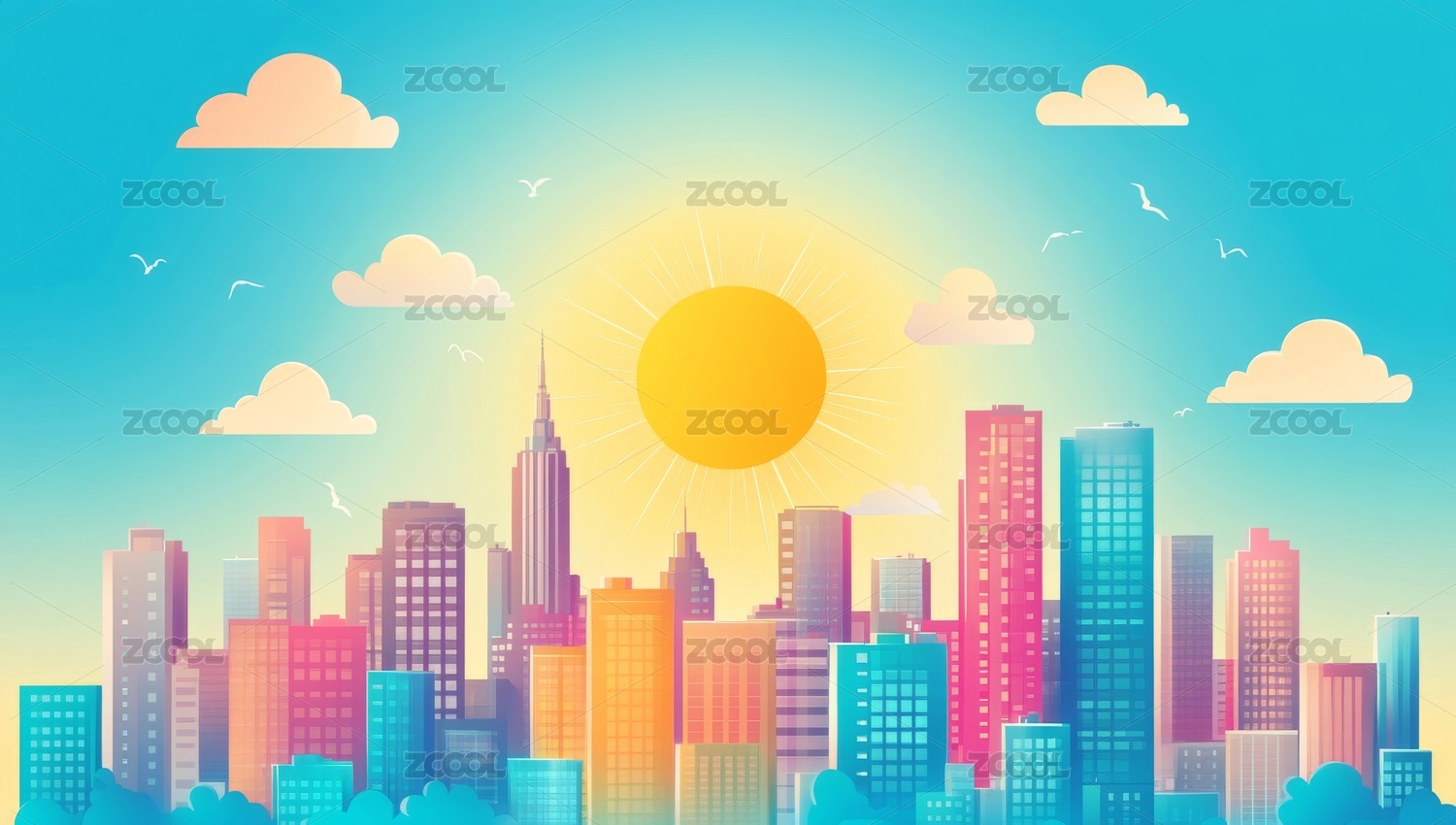 彩虹城市建筑群阳光明媚景色
