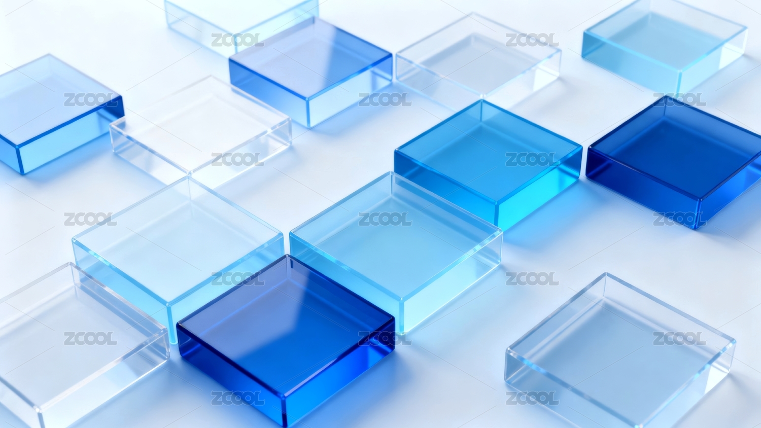 蓝绿色商务科技透明立方体方块玻璃背景壁纸