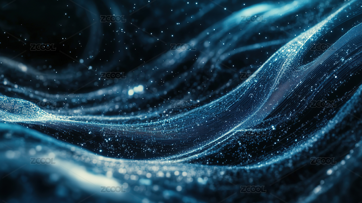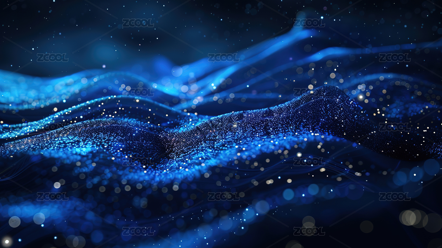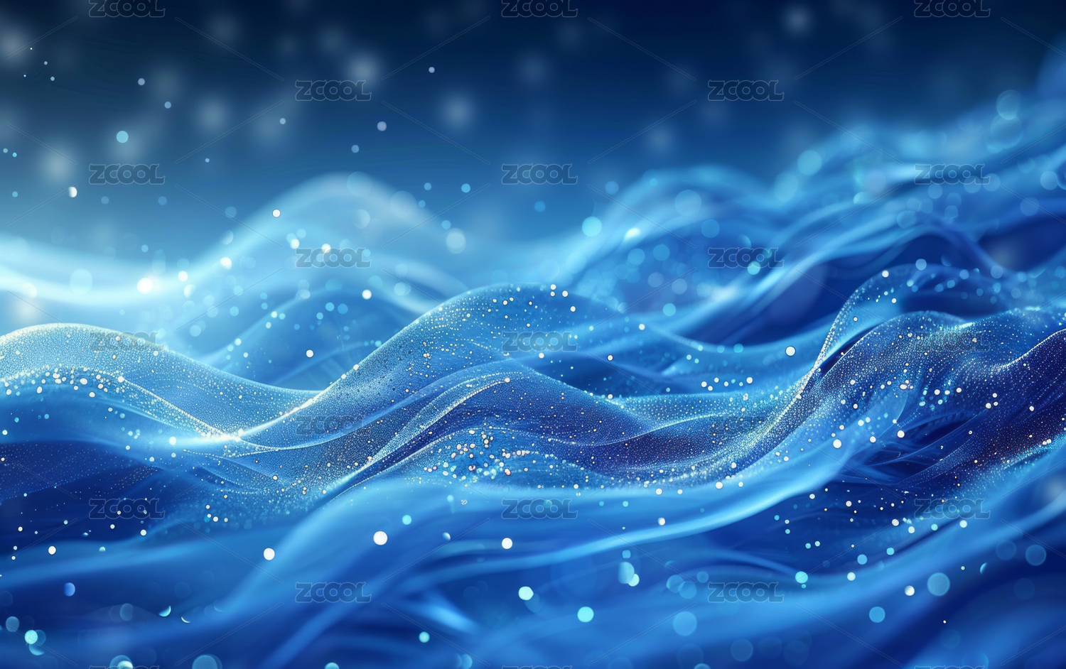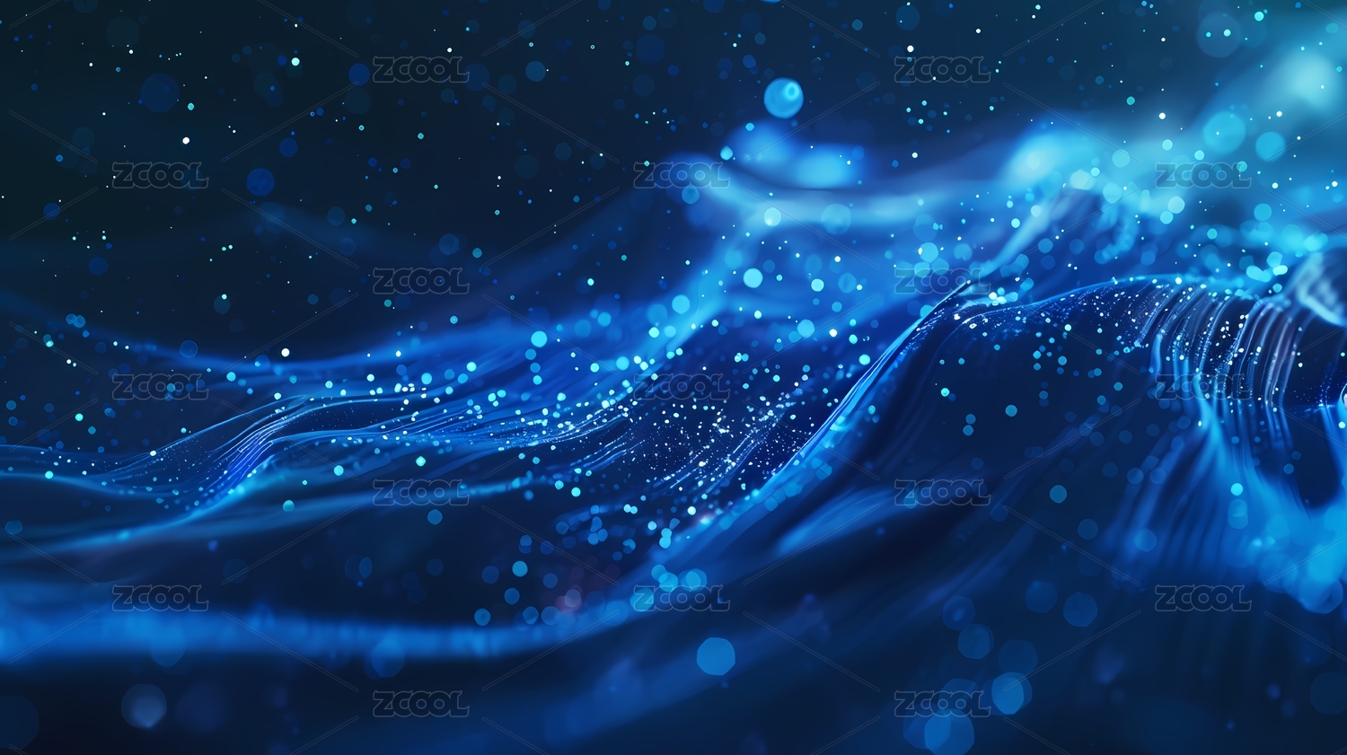 蓝色波浪与光点交织的抽象画面