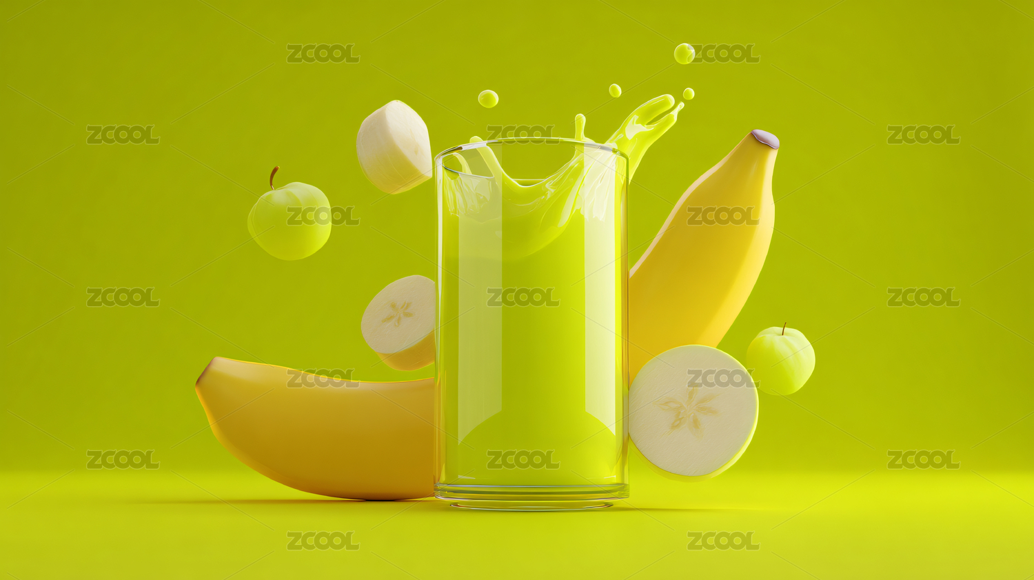 绿色饮品在粉绿背景装饰