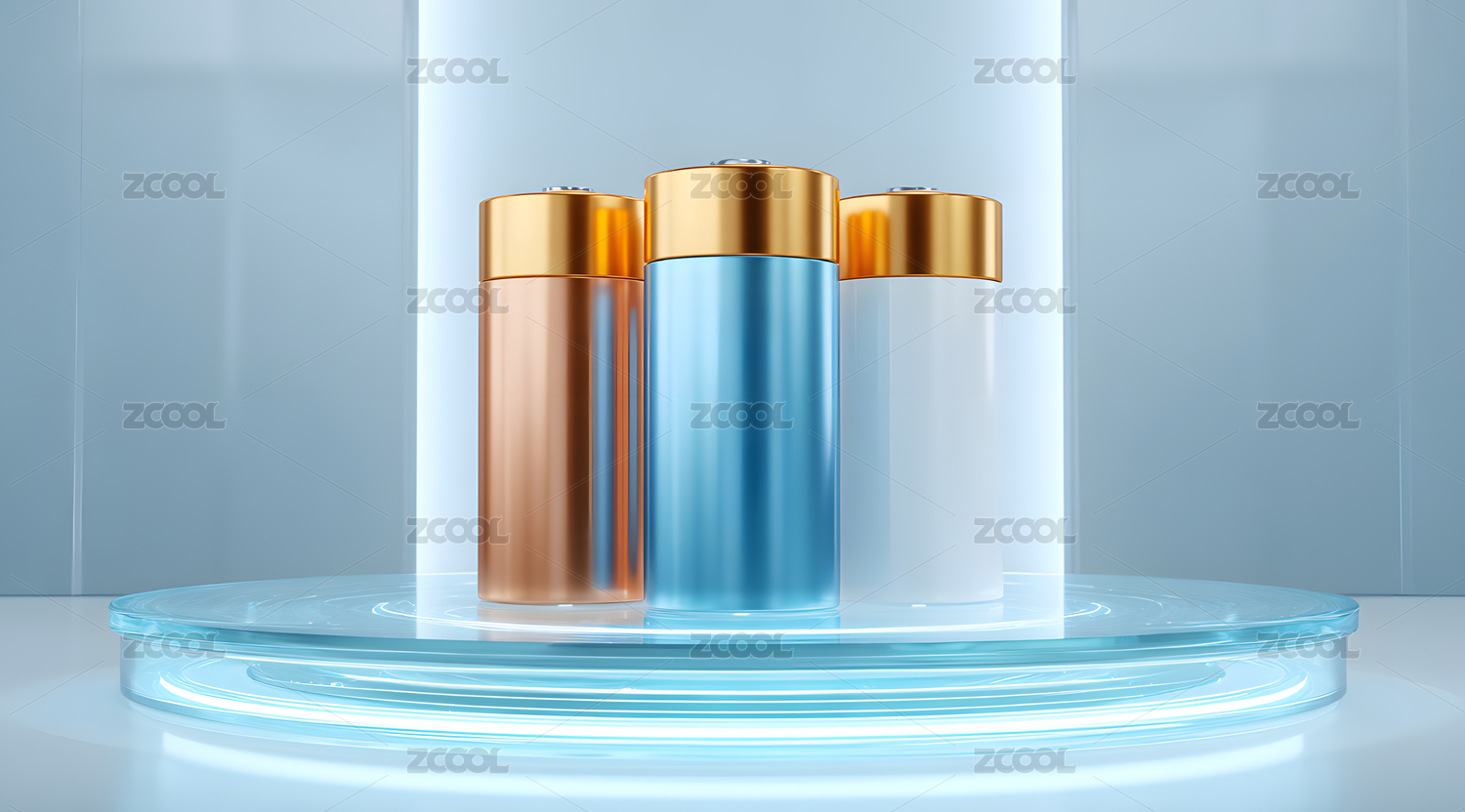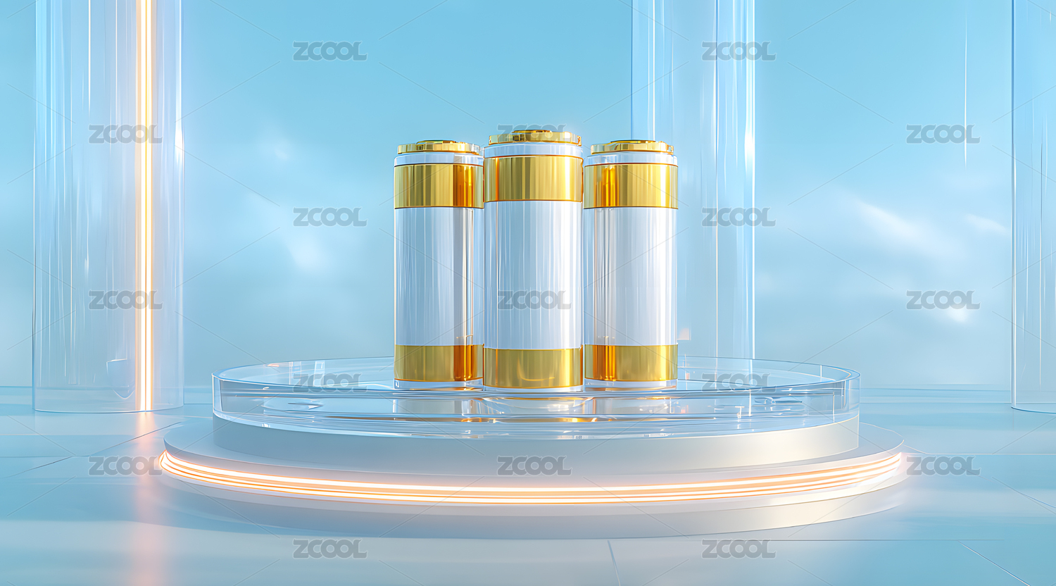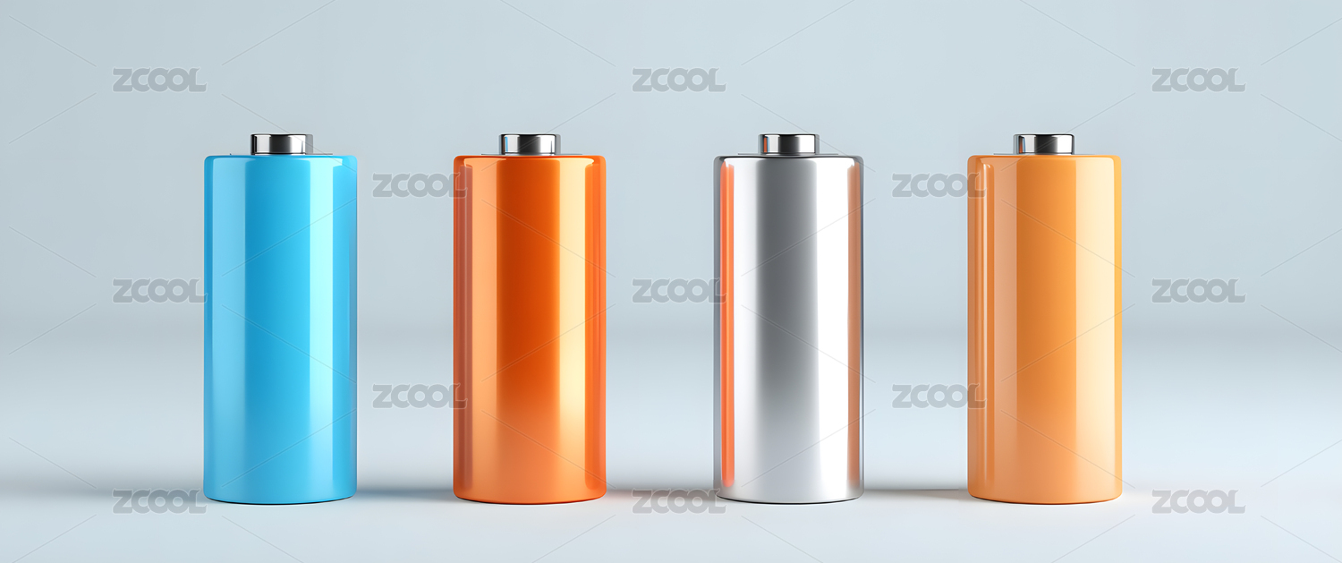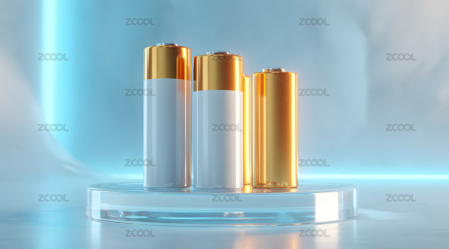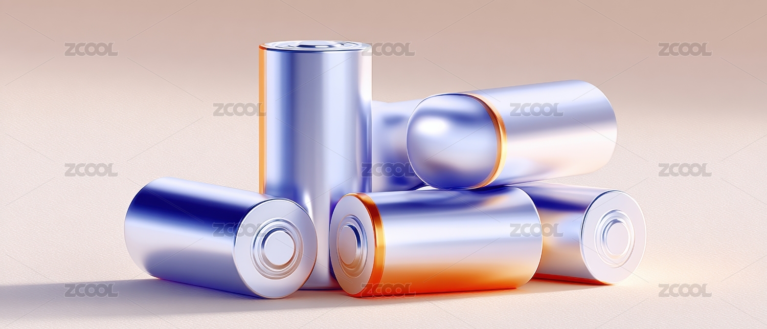 电池,金属质感,圆柱体,金色,银色,光泽,反射,堆叠,排列,空间