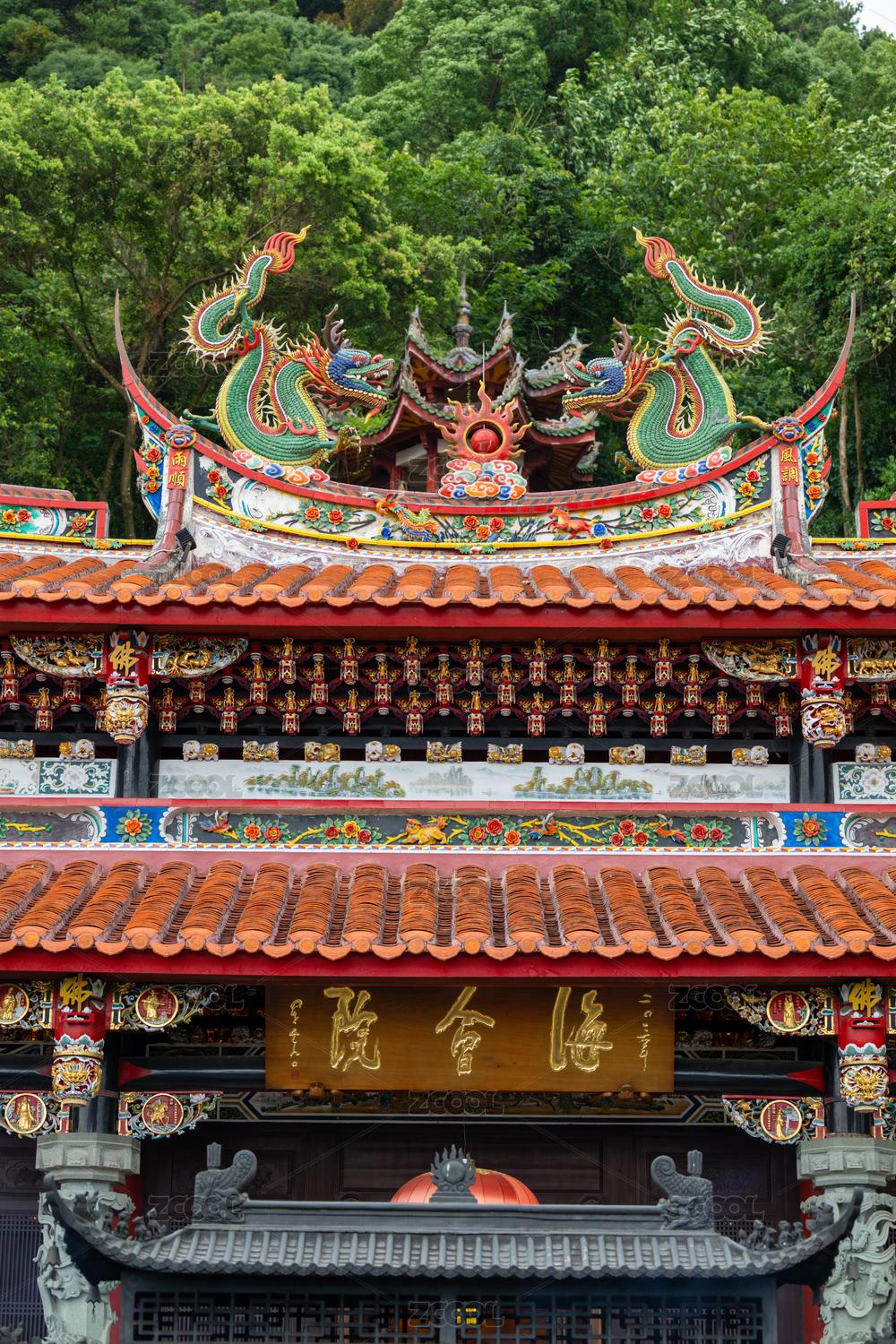 泉州市安溪县清水岩色彩斑斓的传统庙宇屋顶