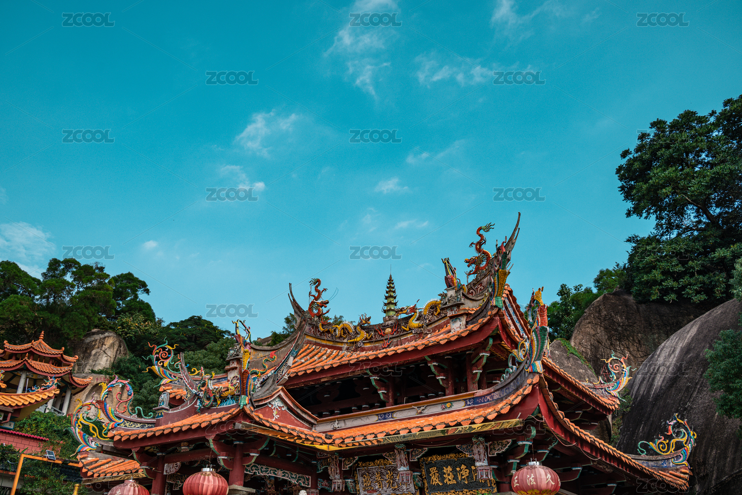 福建省泉州市安溪县清水岩色彩斑斓寺庙屋顶