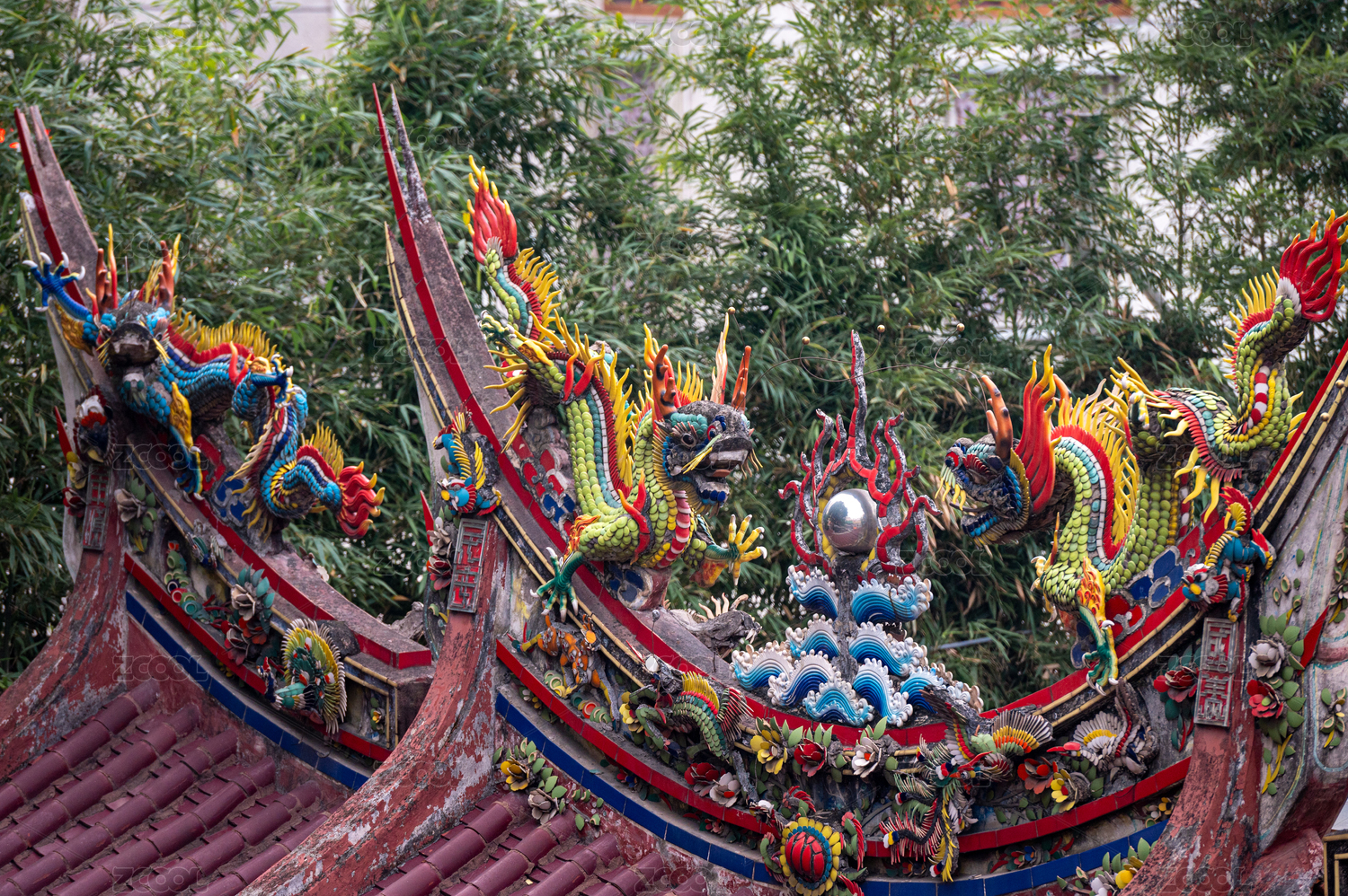 泉州市安溪县清水岩古庙屋顶的精美龙雕