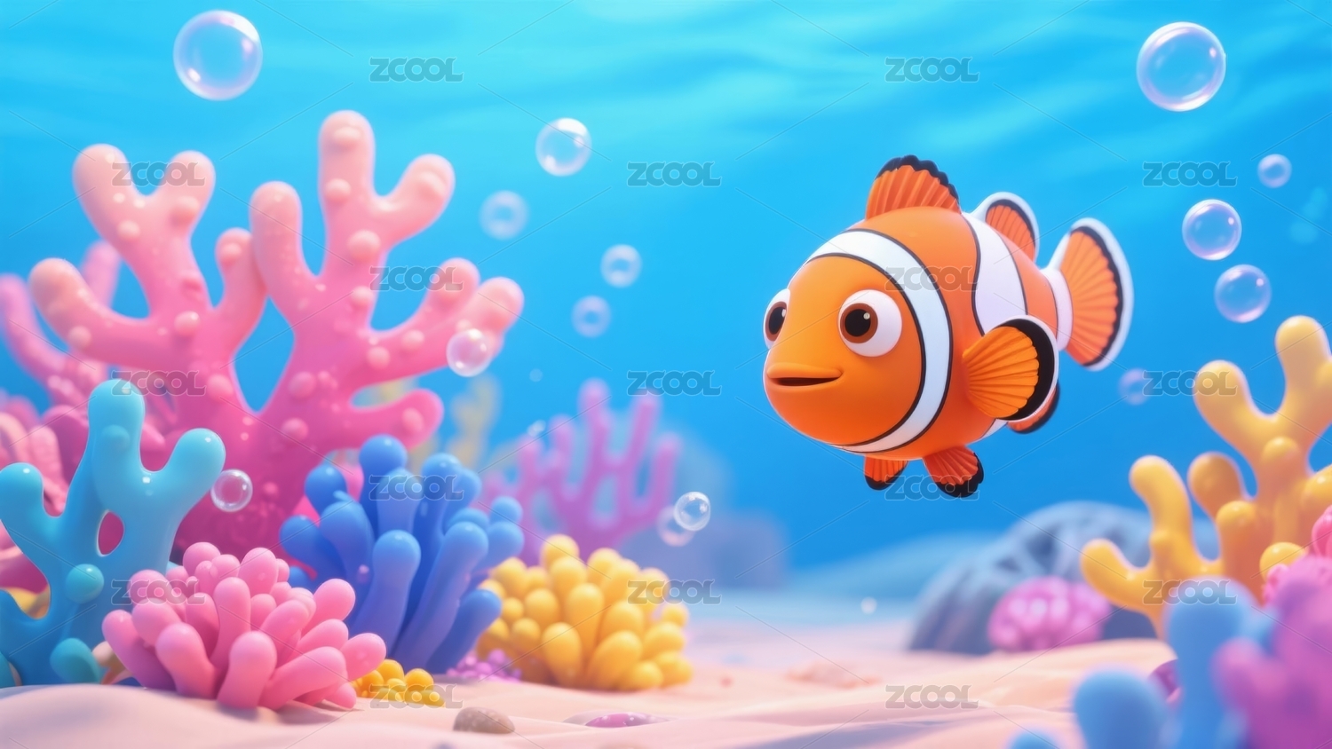 主视觉,商业,壁纸,红鱼,活泼,水中,游动,金鱼,卡通,可爱