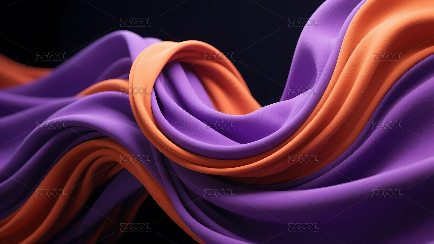 橙紫丝绸与紫色渐变背景的梦幻效果