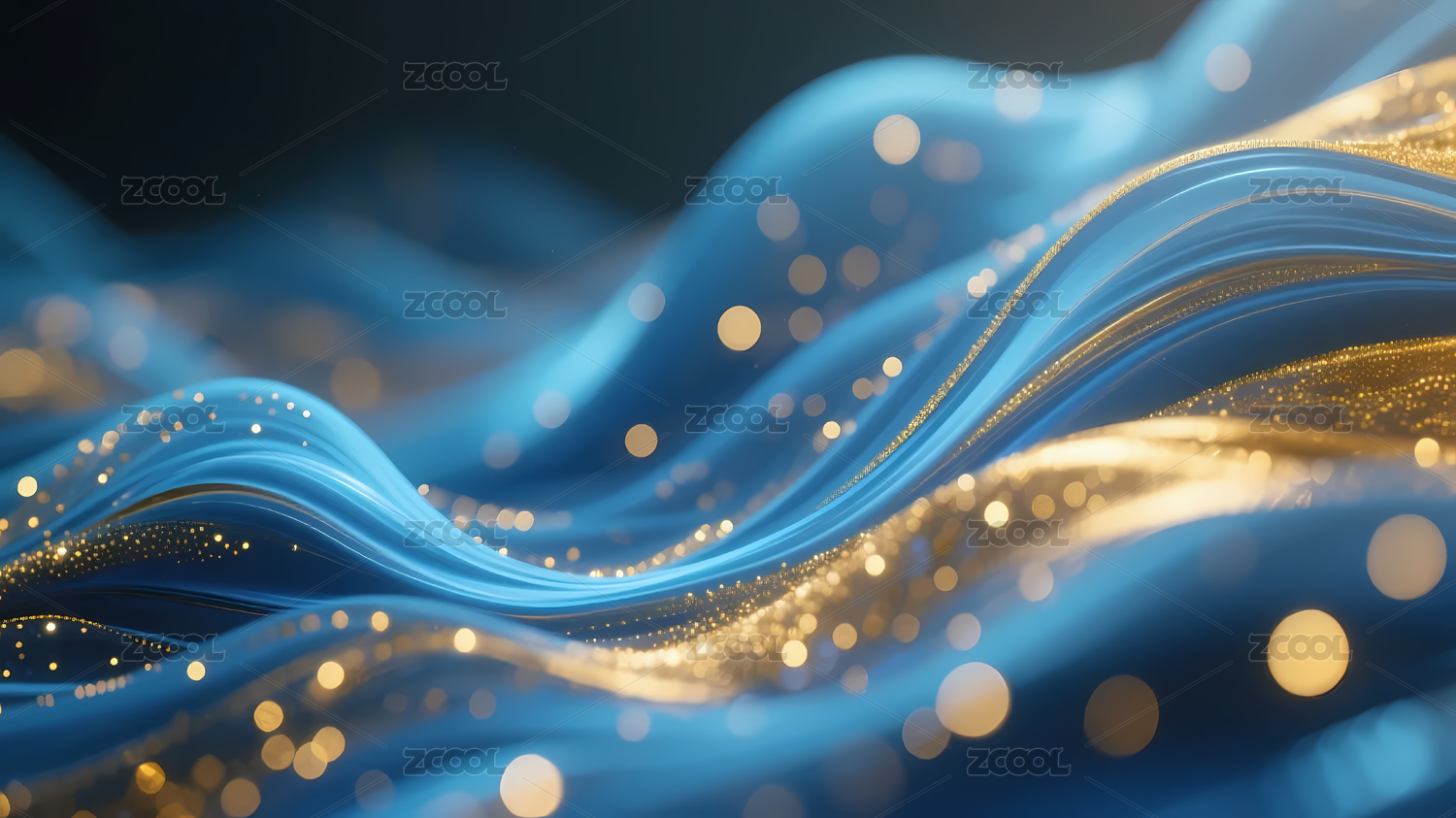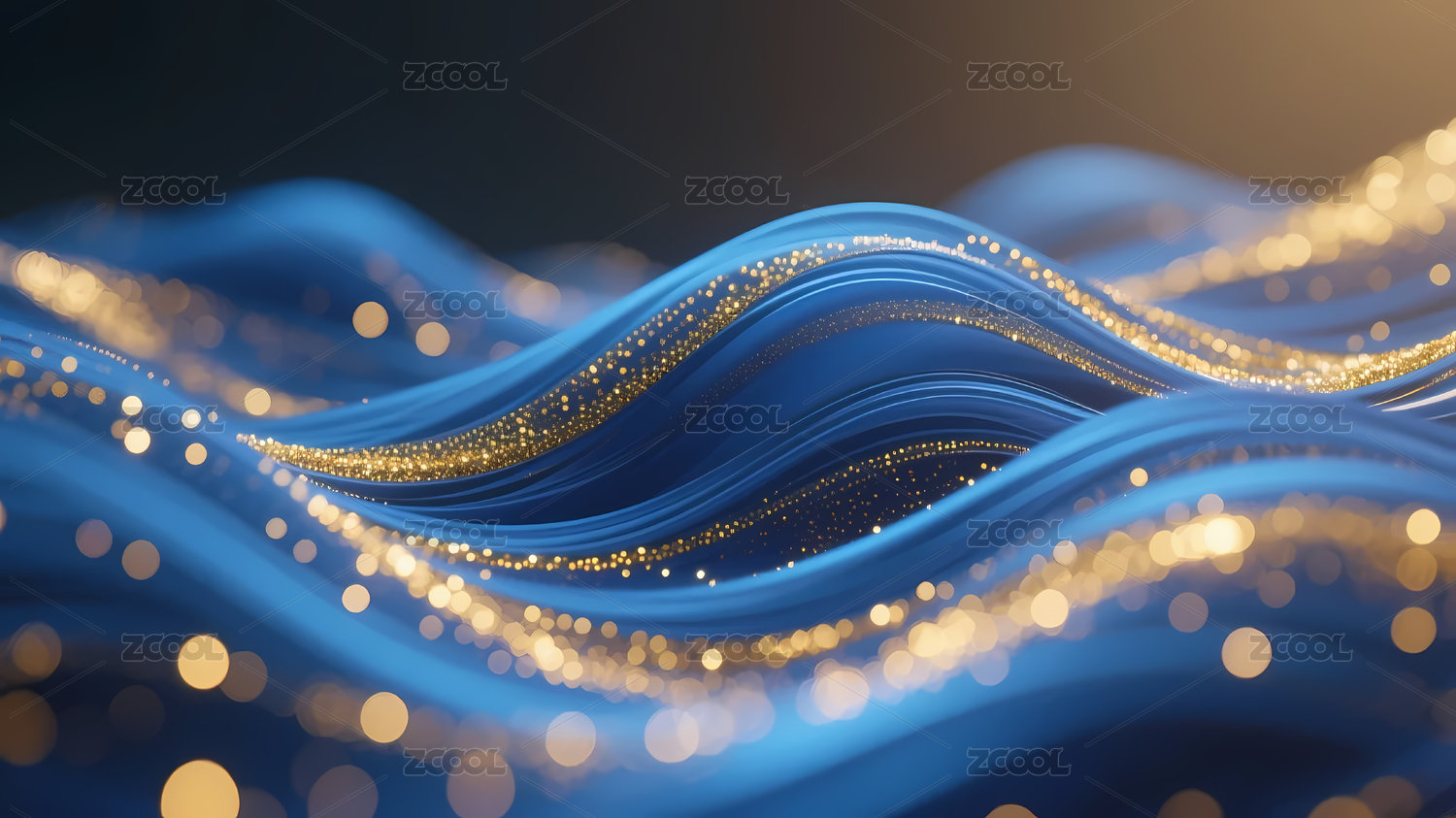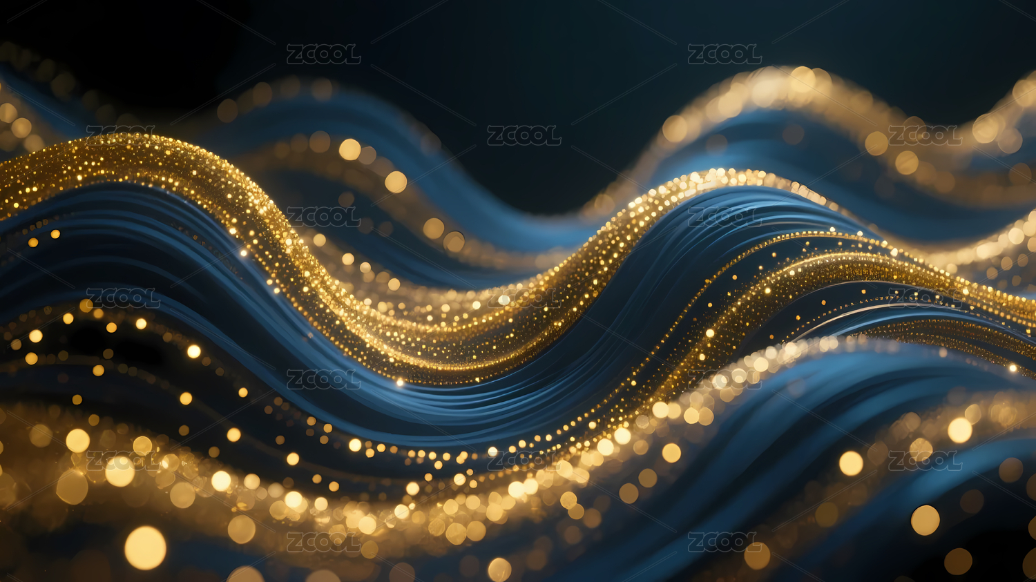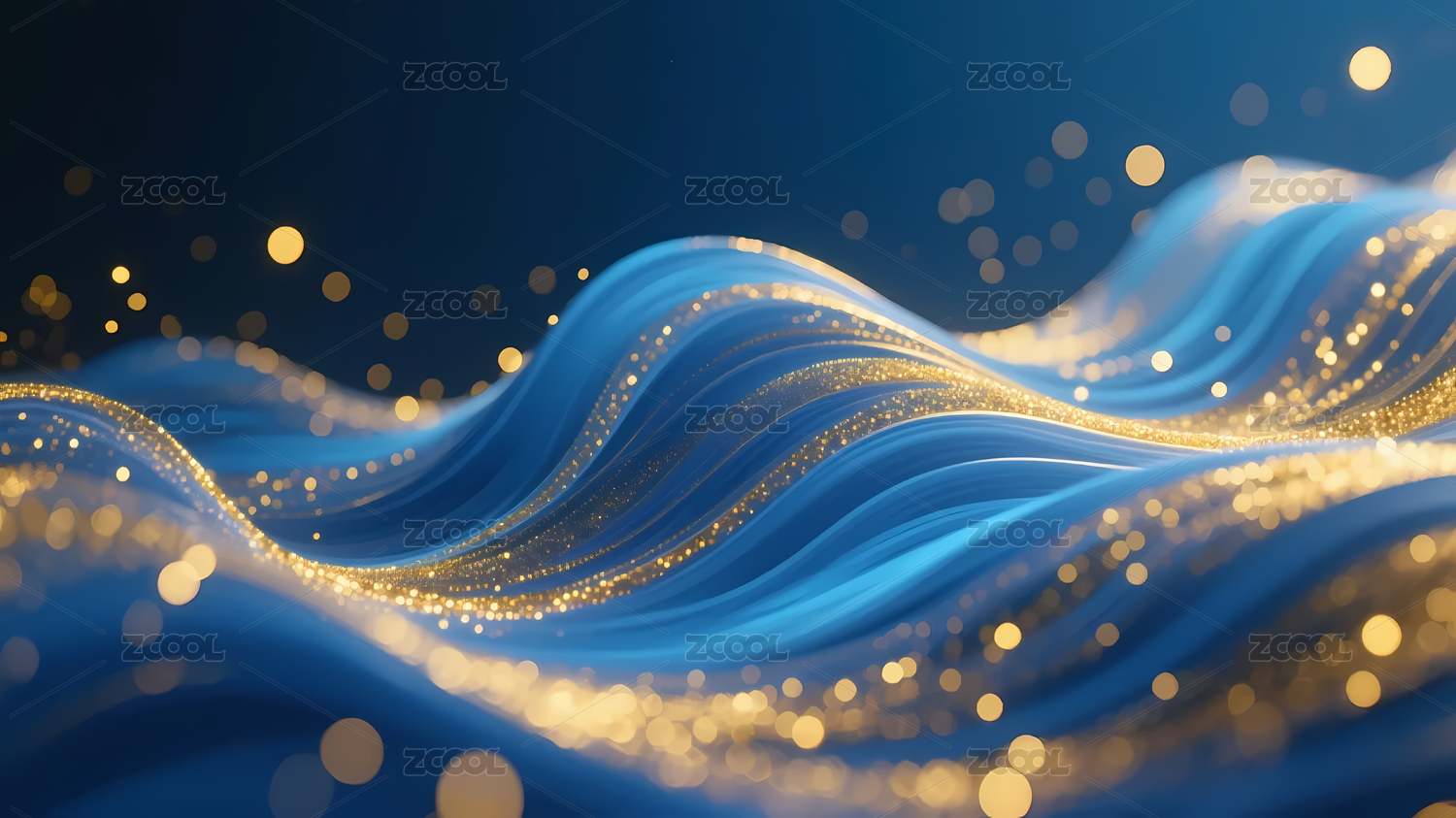 波浪,背景,视觉,蓝色,渐变,深蓝色,金色,线条,光点,梦幻
