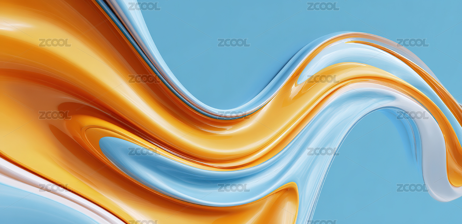 橙色波浪曲线与蓝色渐变背景的视觉冲击
