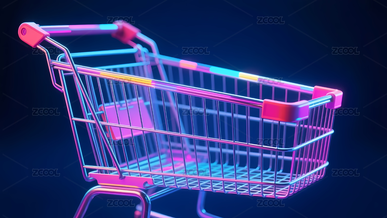 霓虹光影环绕的购物车