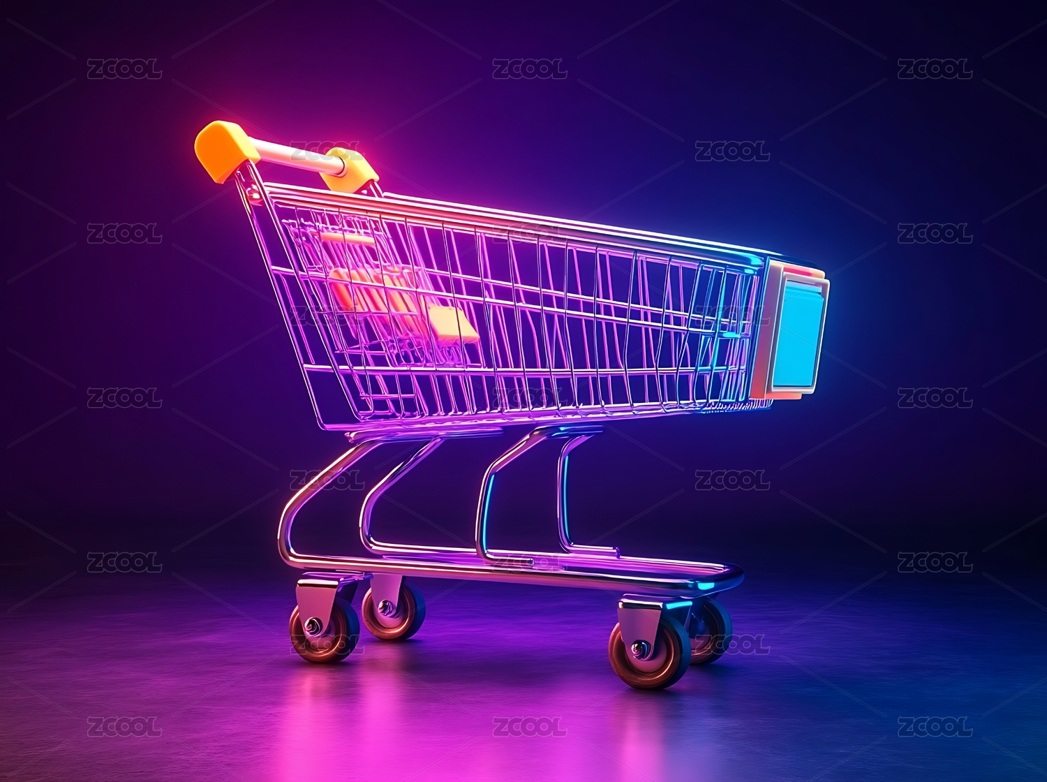 霓虹购物车未来科技感场景