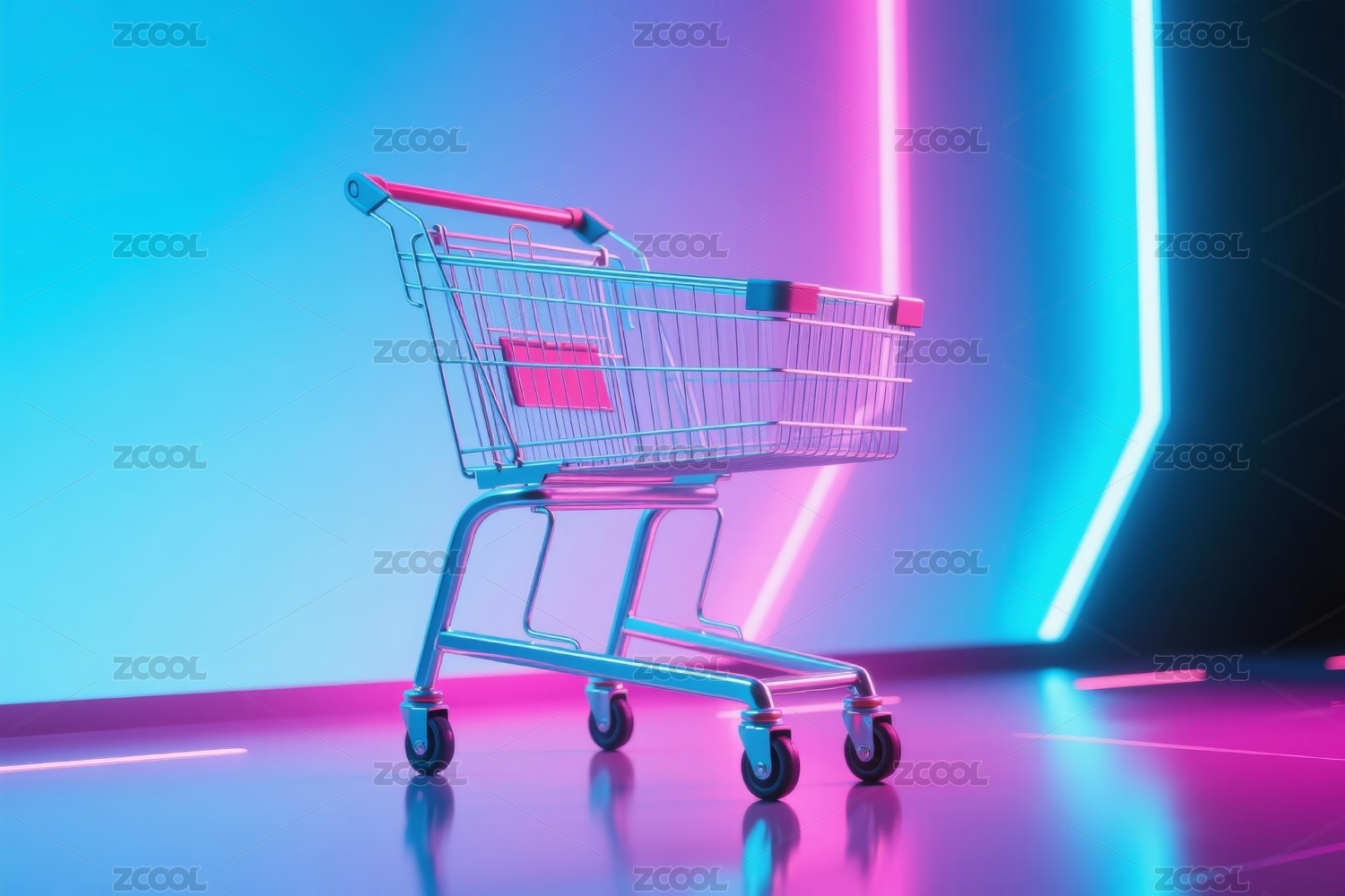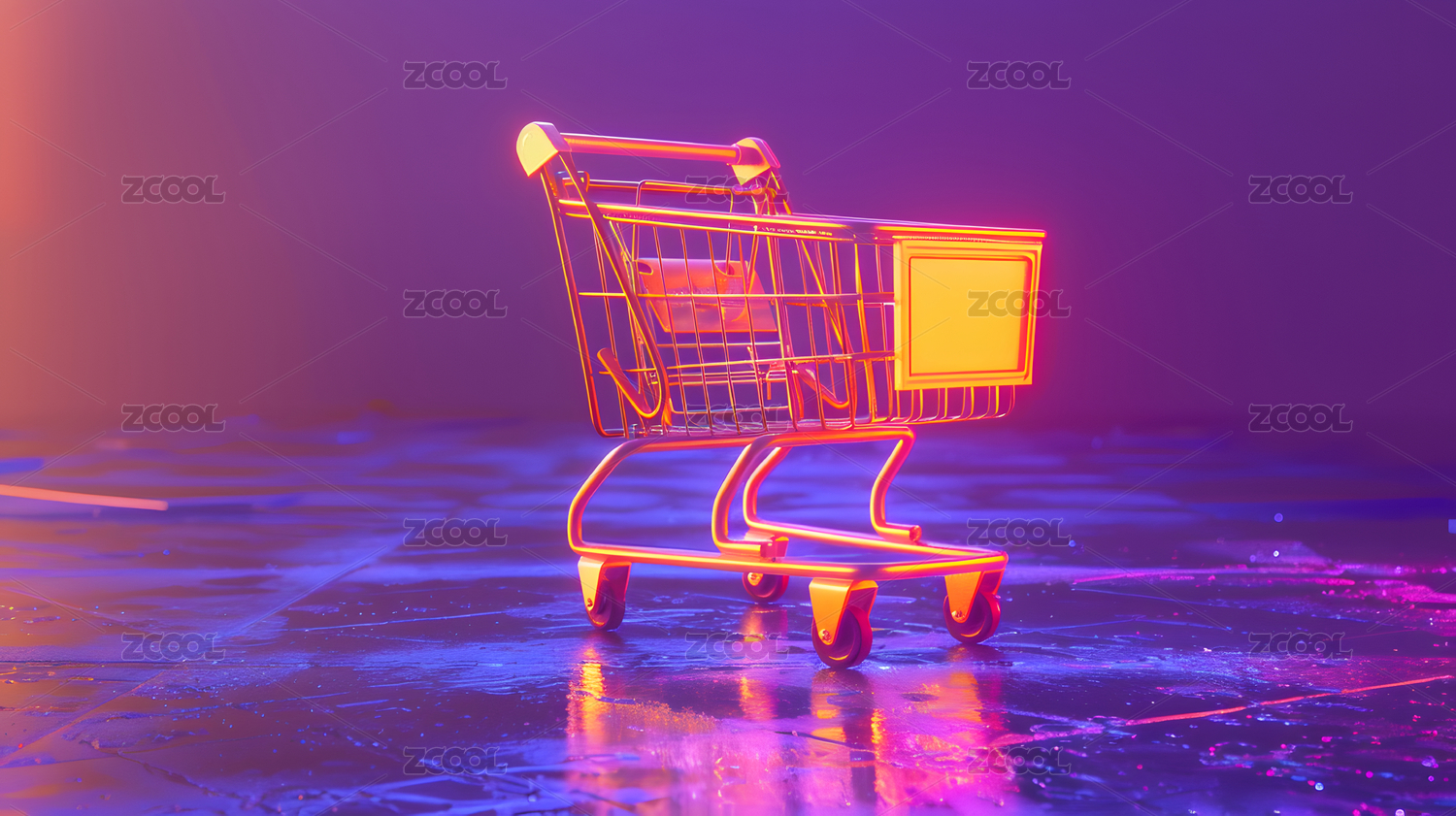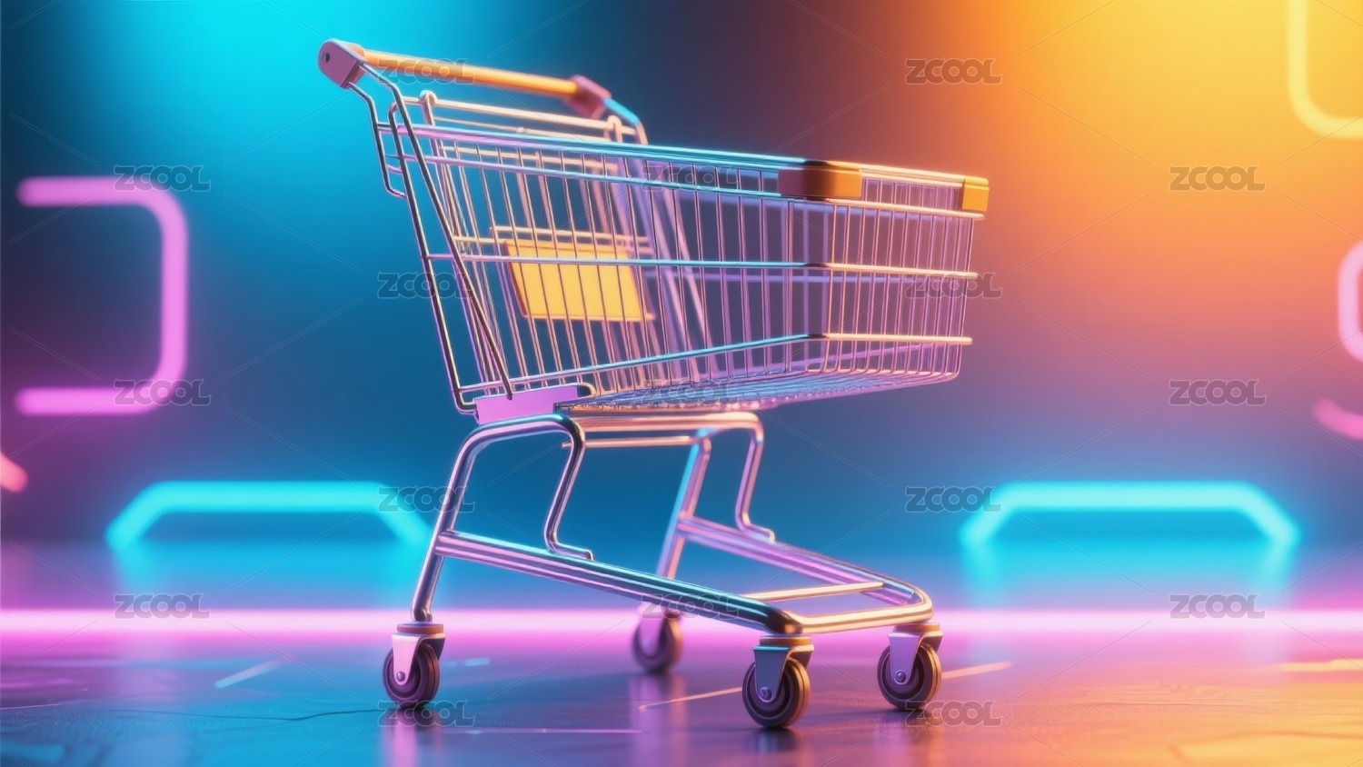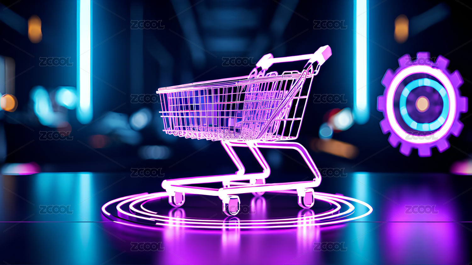 霓虹购物车未来科技感场景