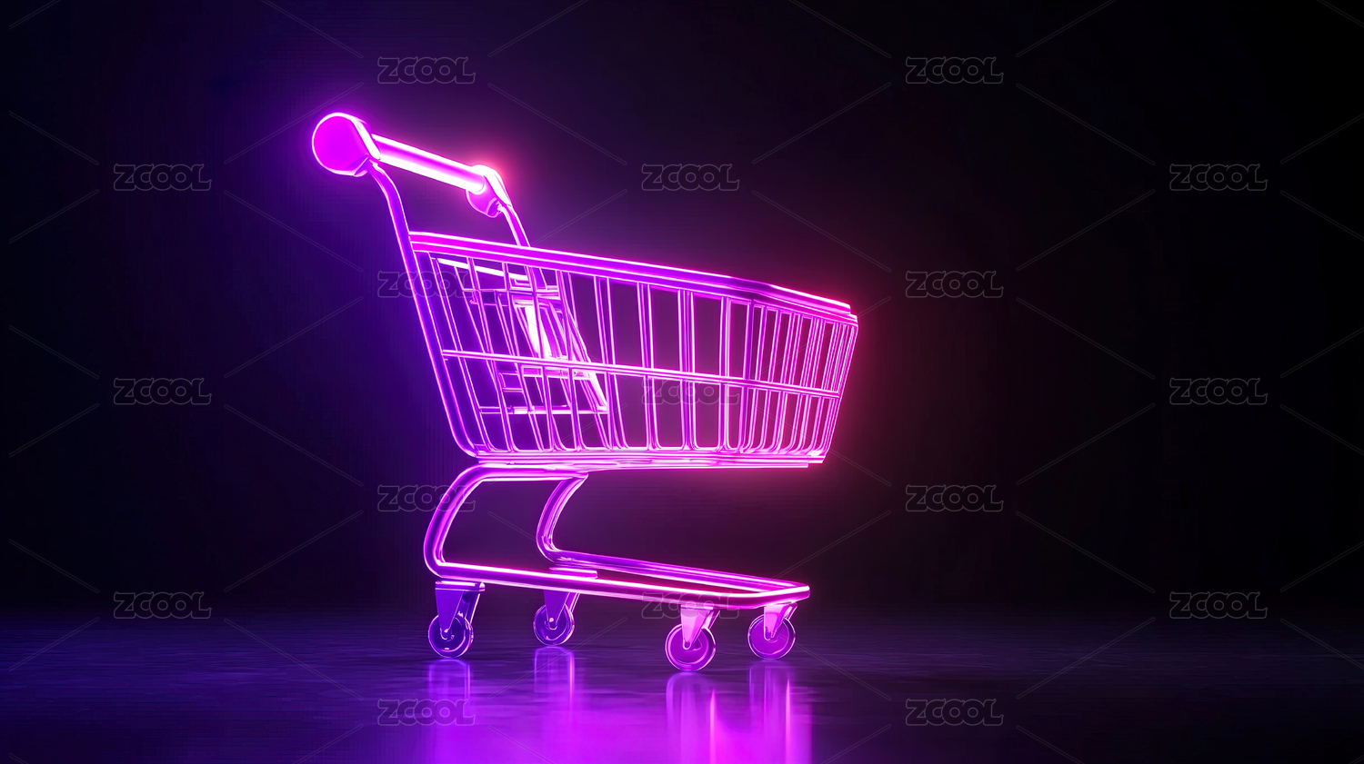 霓虹光影环绕的购物车