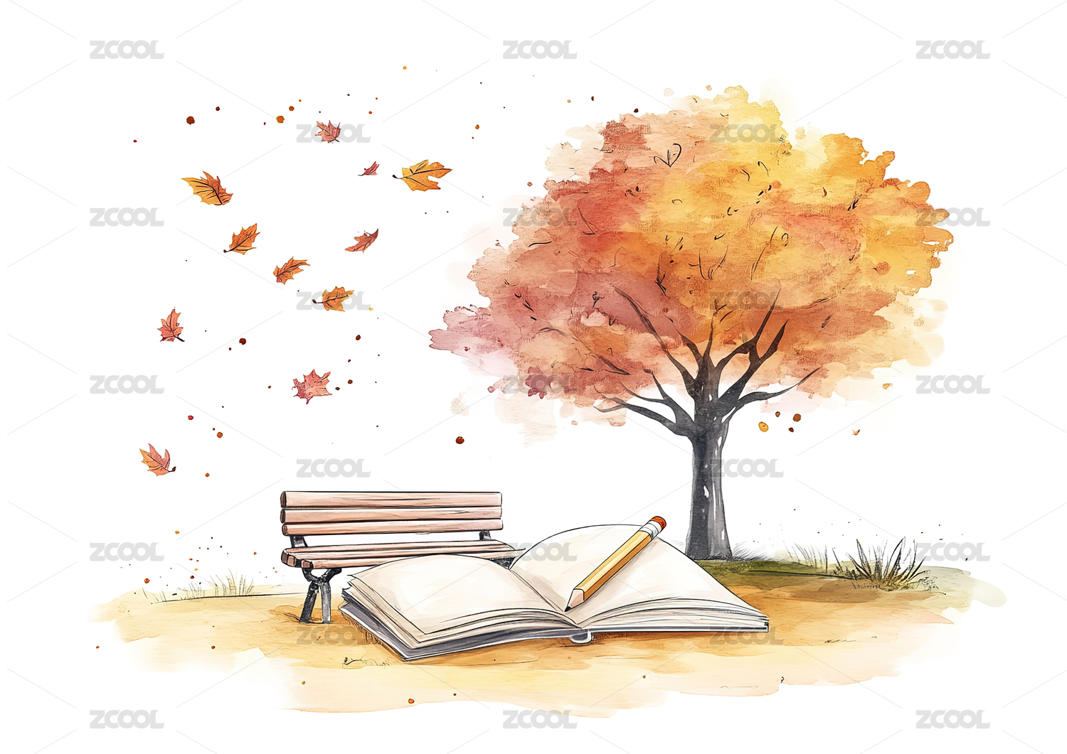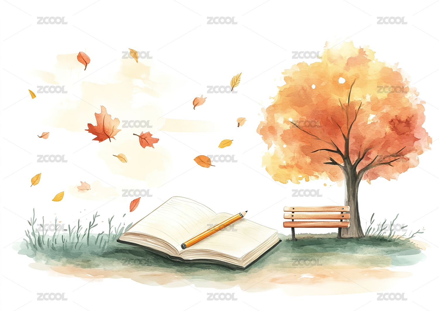 宁静,插画,秋天,自然景观,太阳,山丘,植物,叶子,温暖,丰收