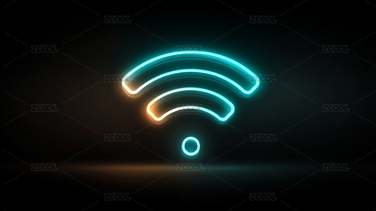 无线网络,图标设计,蓝色,橙色,渐变效果,发光,信号强度,网络连接,科技,通信