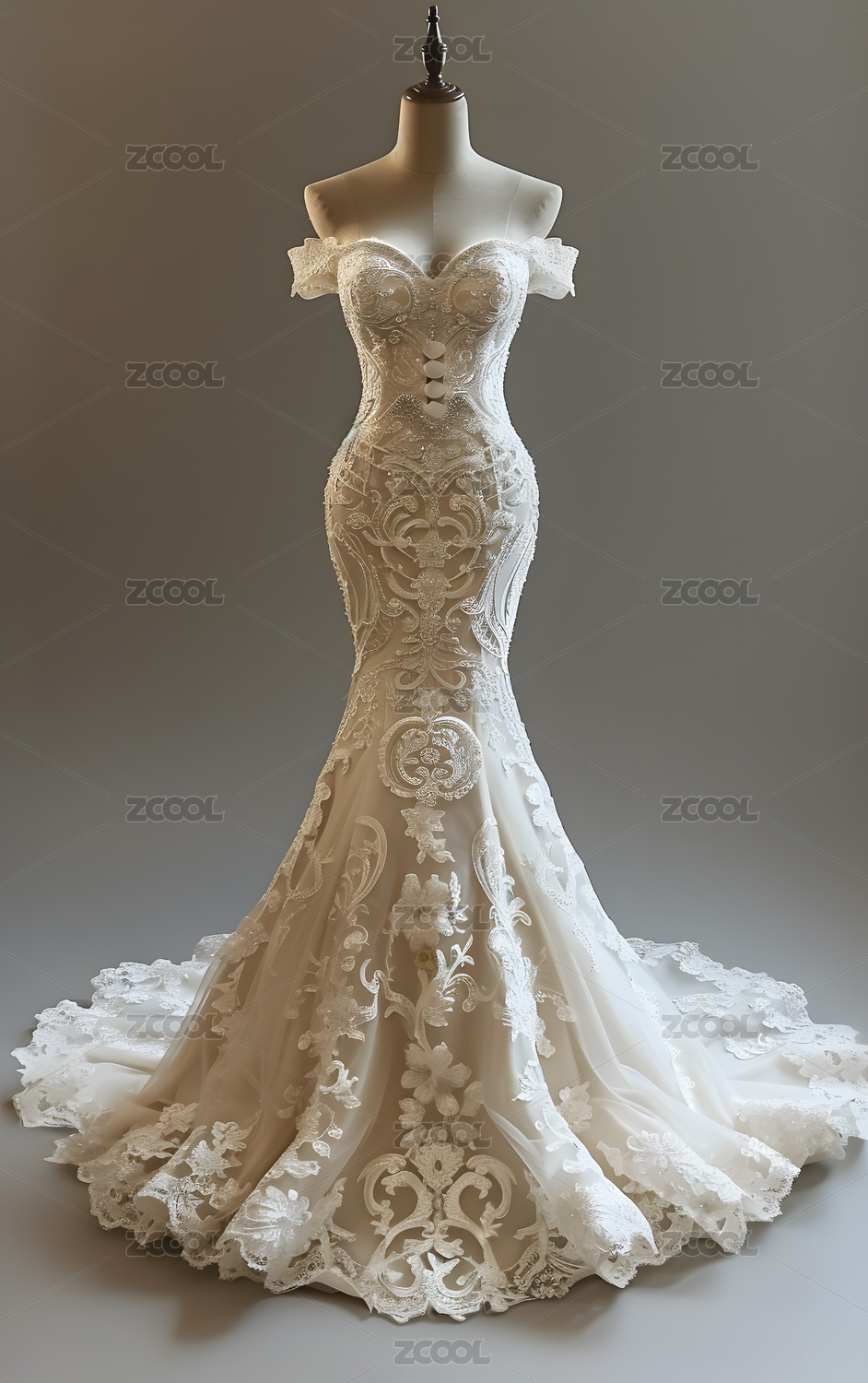 婚礼,礼服,长裙,人台,白色,优雅,精致,丝带,紫色,浅色
