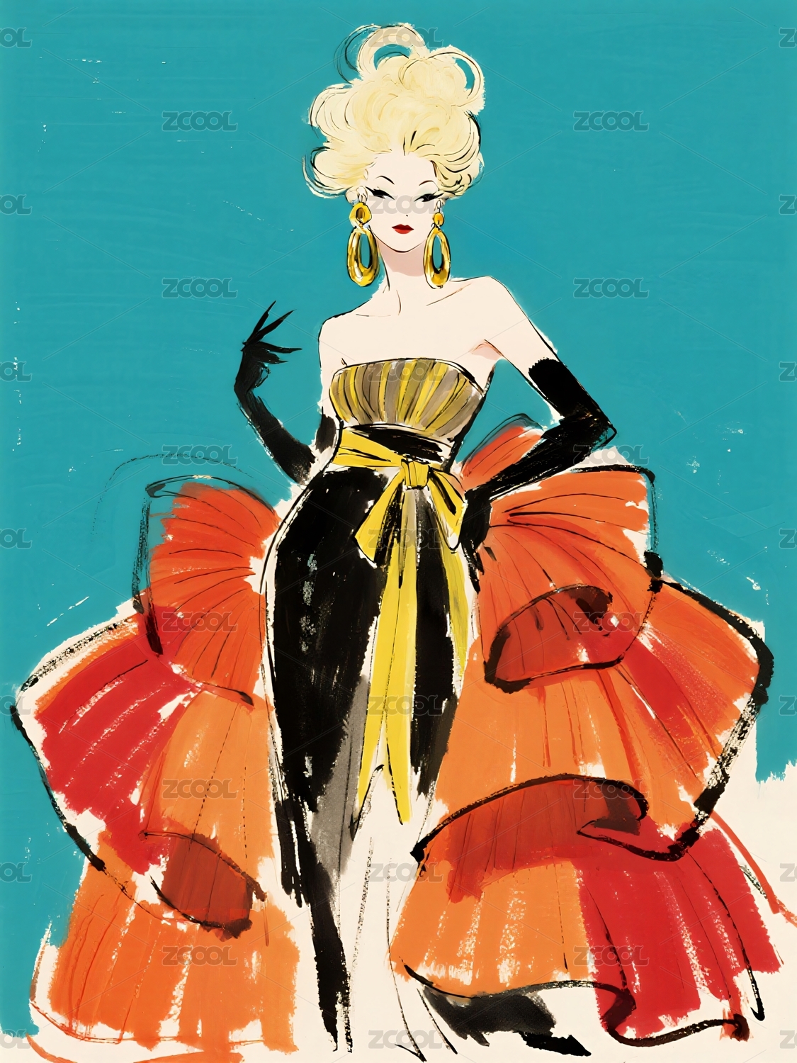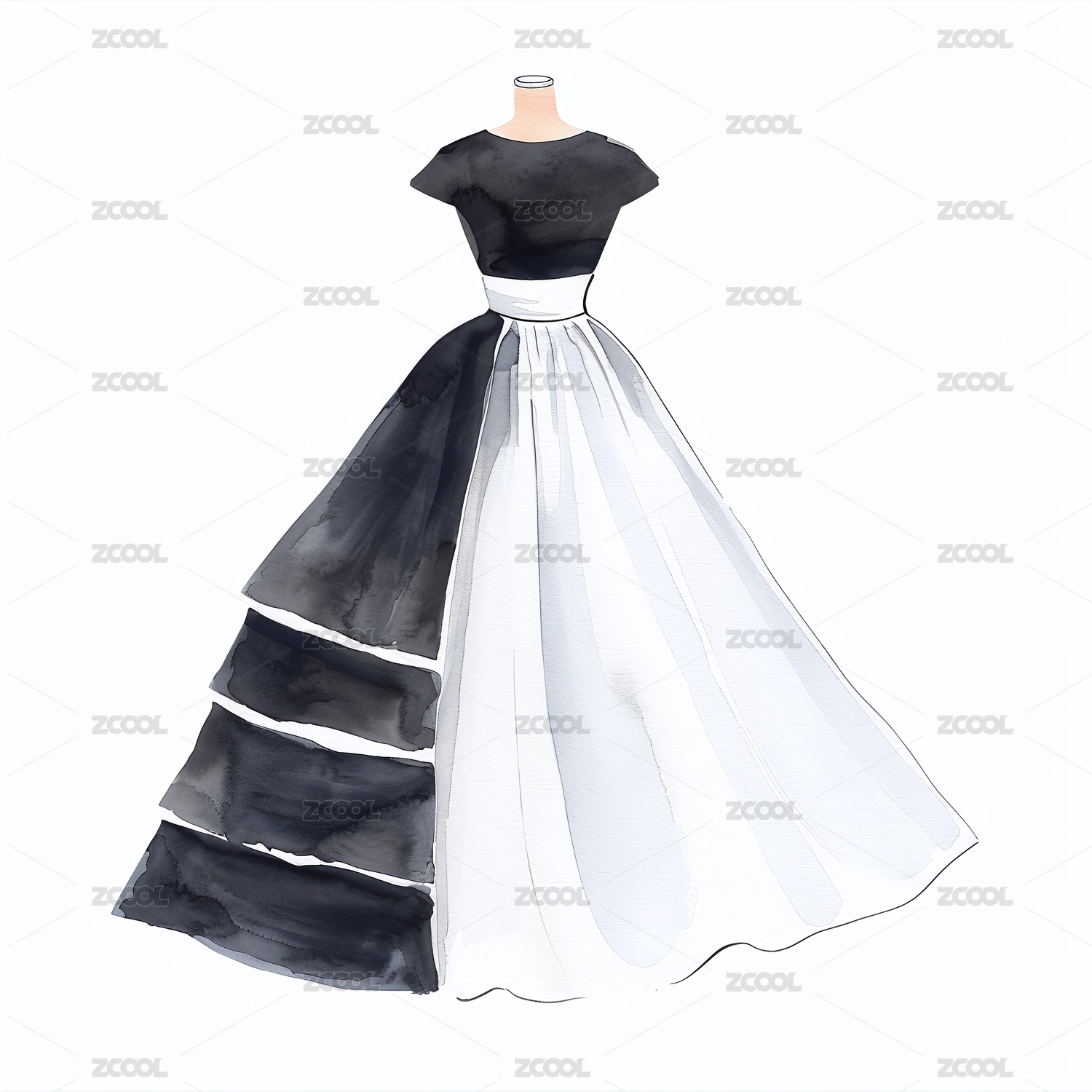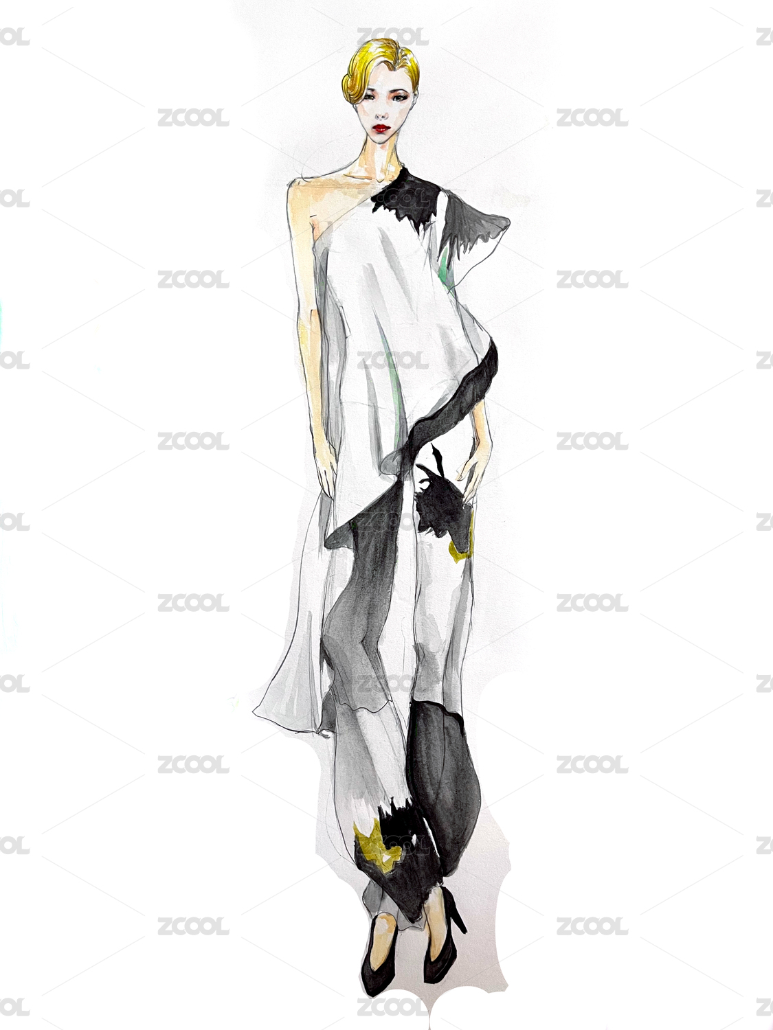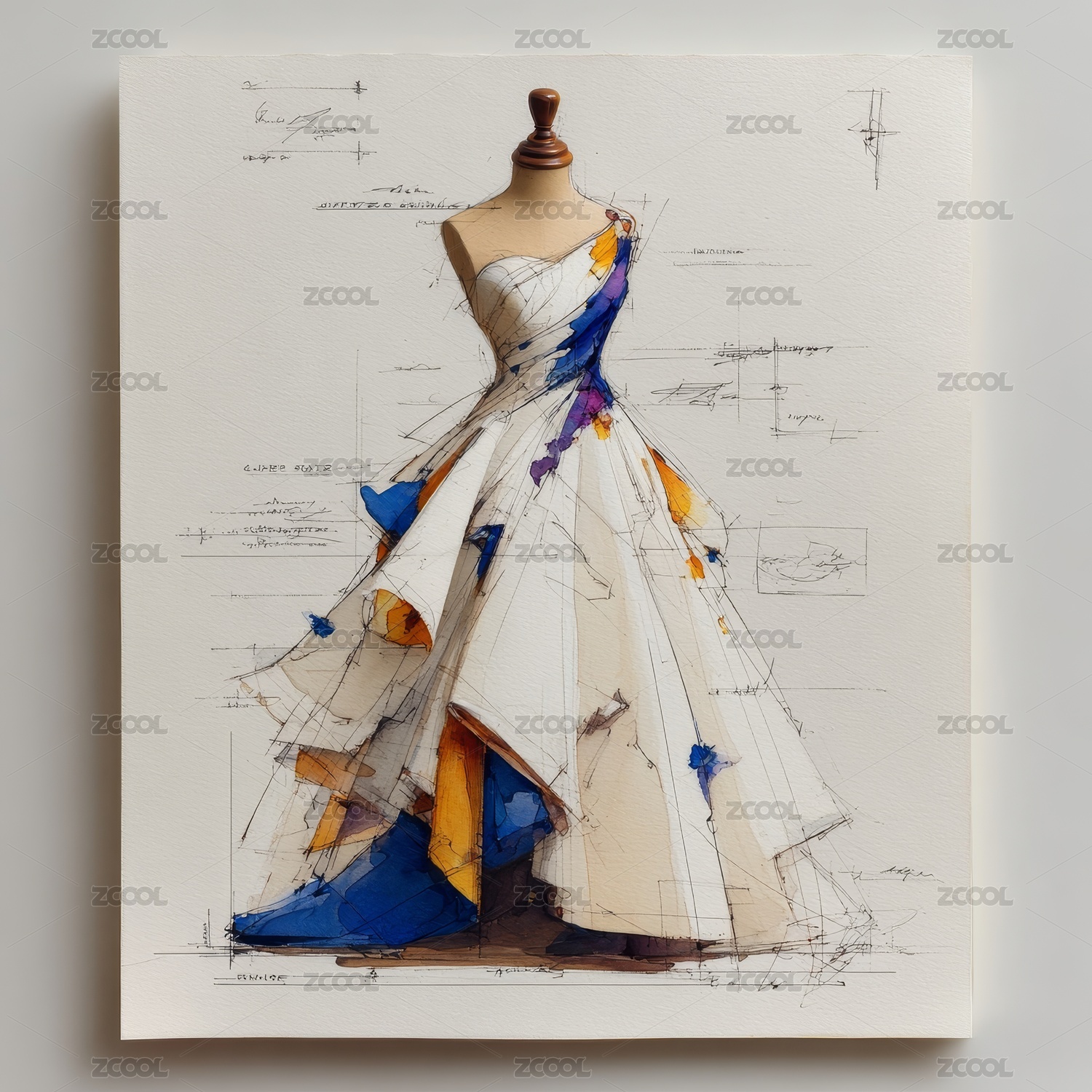 欧洲洛可可卷草纹样高定礼服设计手稿