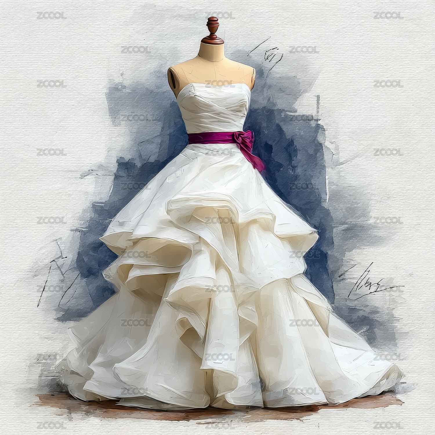 婚礼,礼服,长裙,人台,白色,优雅,精致,丝带,紫色,浅色