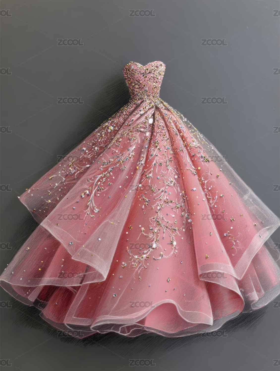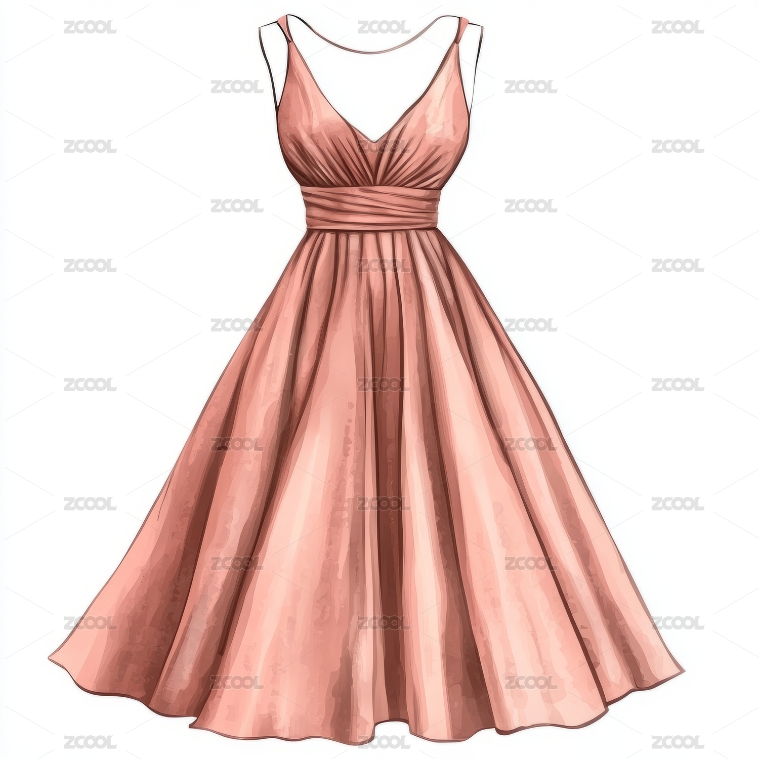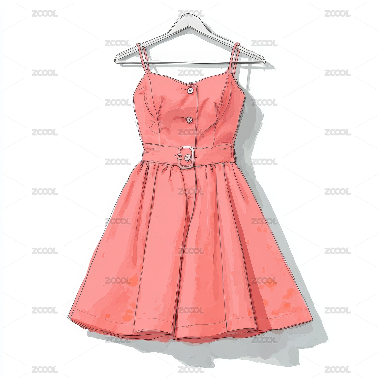 粉色,蓬蓬裙,连衣裙,可爱,简约,扁平,插画,2D,绘画,剪贴画