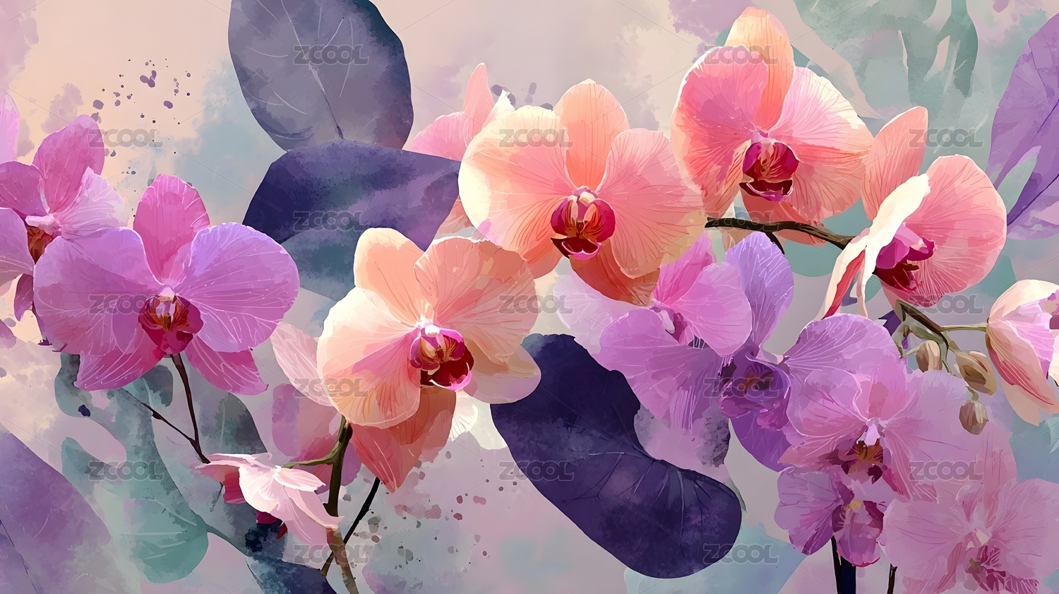 水彩兰花优雅绽放