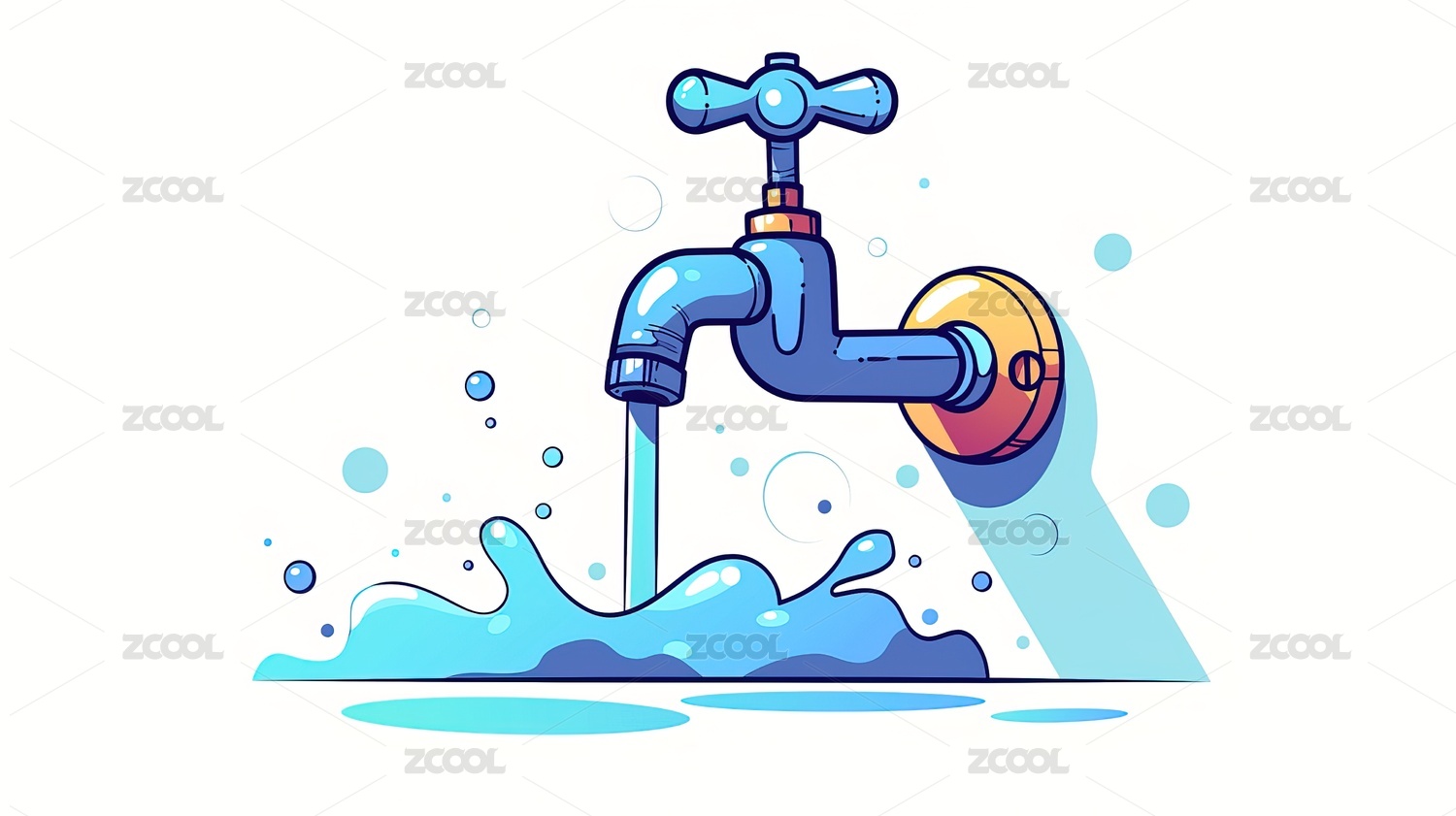 水管,水龙头,漏水,接头,卡通,插画,紫色背景,管道,水滴,阀门