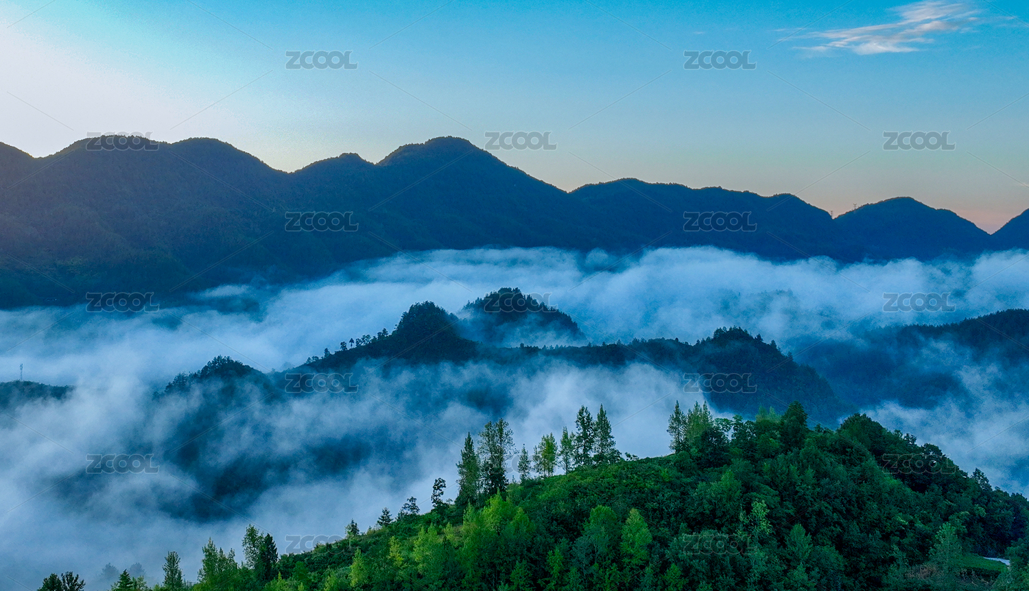 背景,绿色,自然,前景,竹叶,山脉,薄雾,蓝天,清晨,傍晚