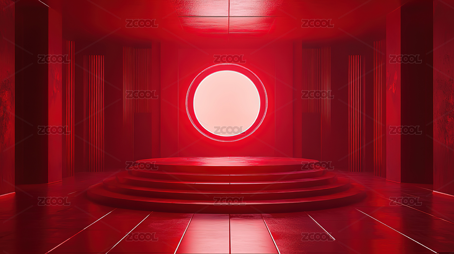 圆形,背景,主体,红色,装饰,拱门,台阶,平台,方形,统一
