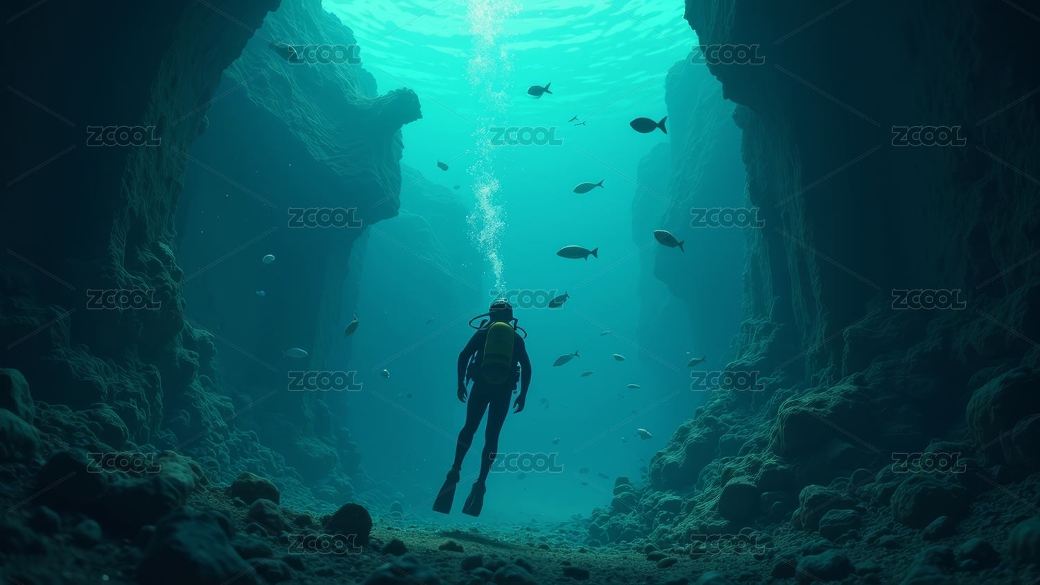 深海潜水员光线透过海水