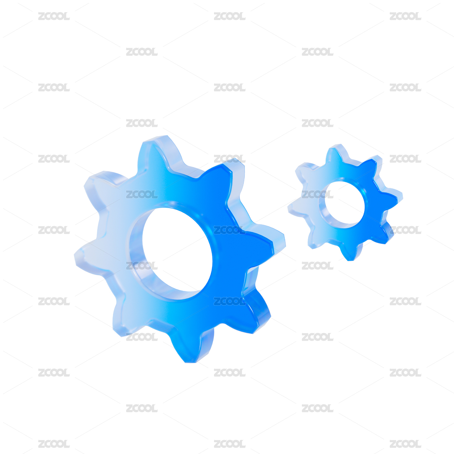 蓝色齿轮三维素材
