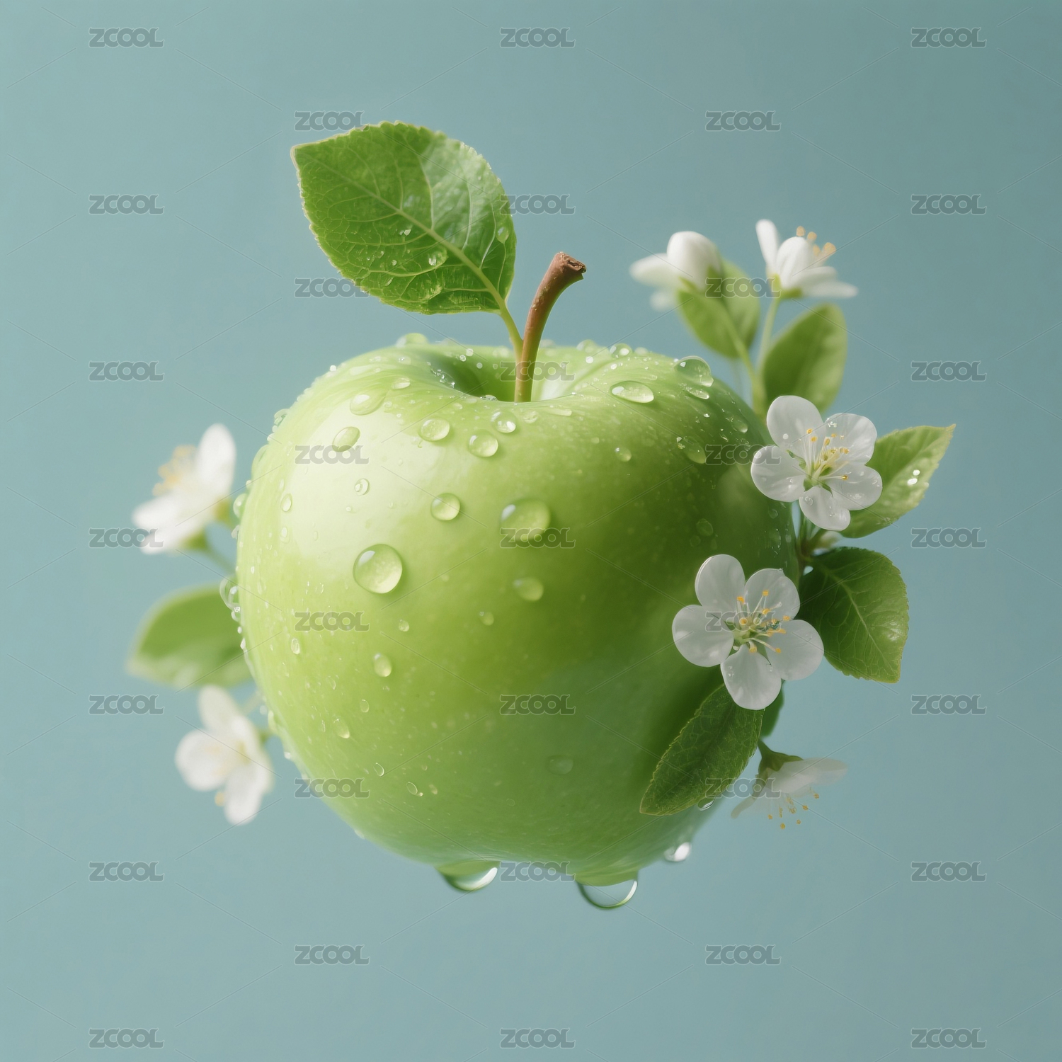 露珠,露水,水滴,水珠,绿叶,叶子,花朵,青苹果