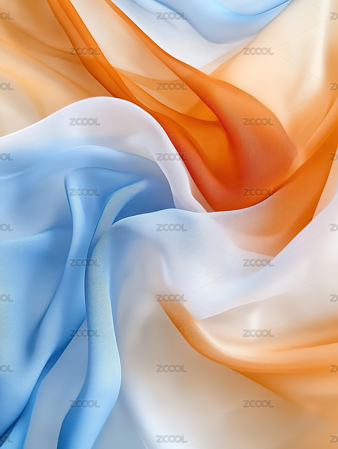 蓝色与橙色丝绸波浪的艺术效果