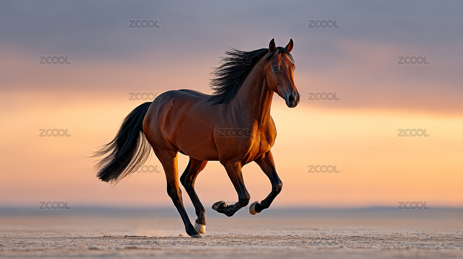 夕阳下奔跑的骏马