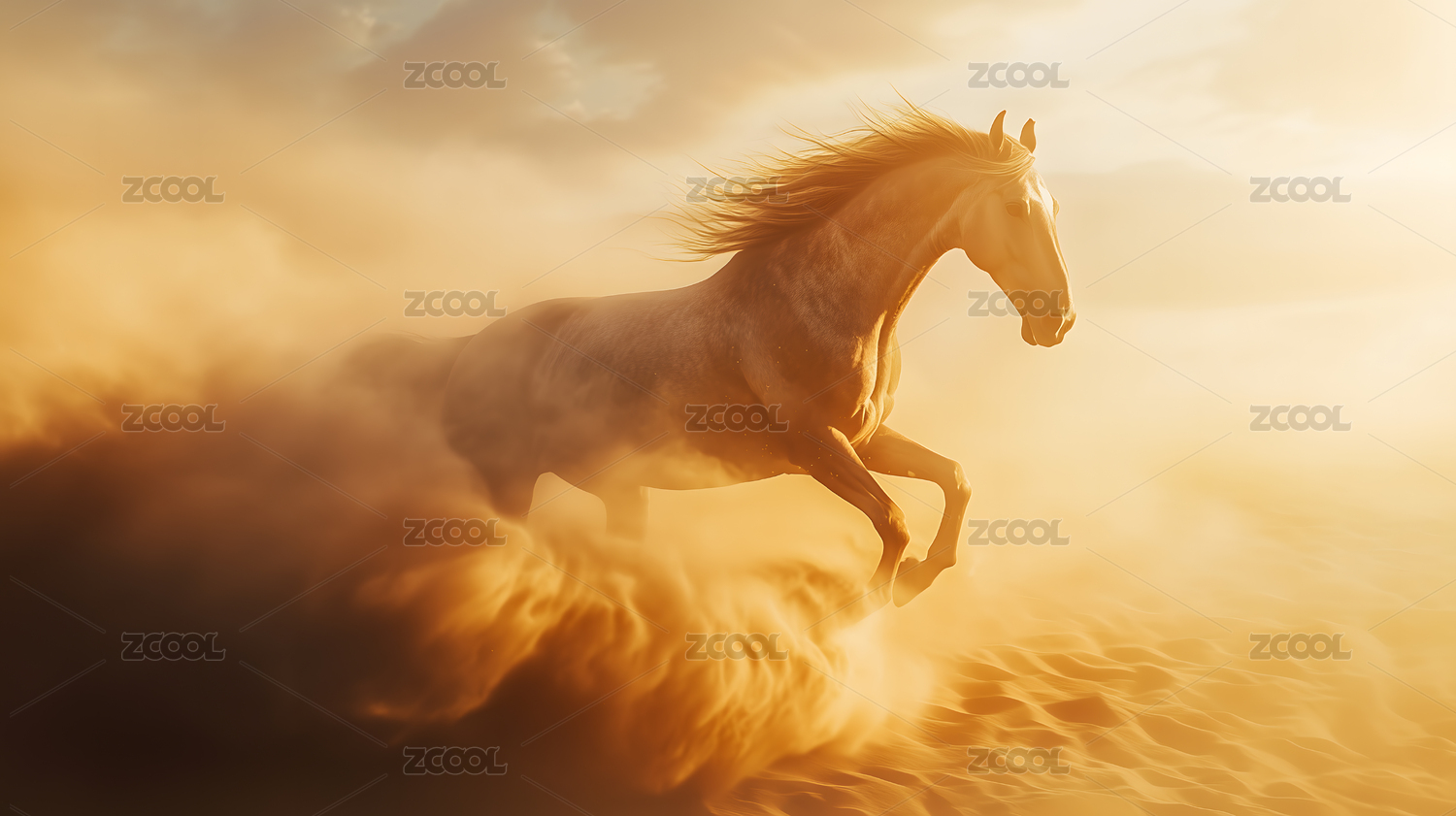 白马奔跑沙漠场景
