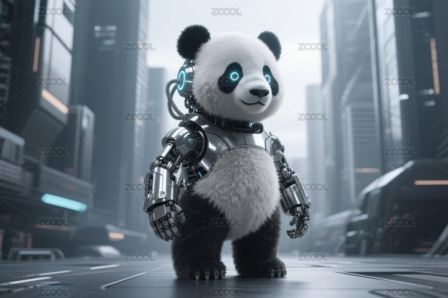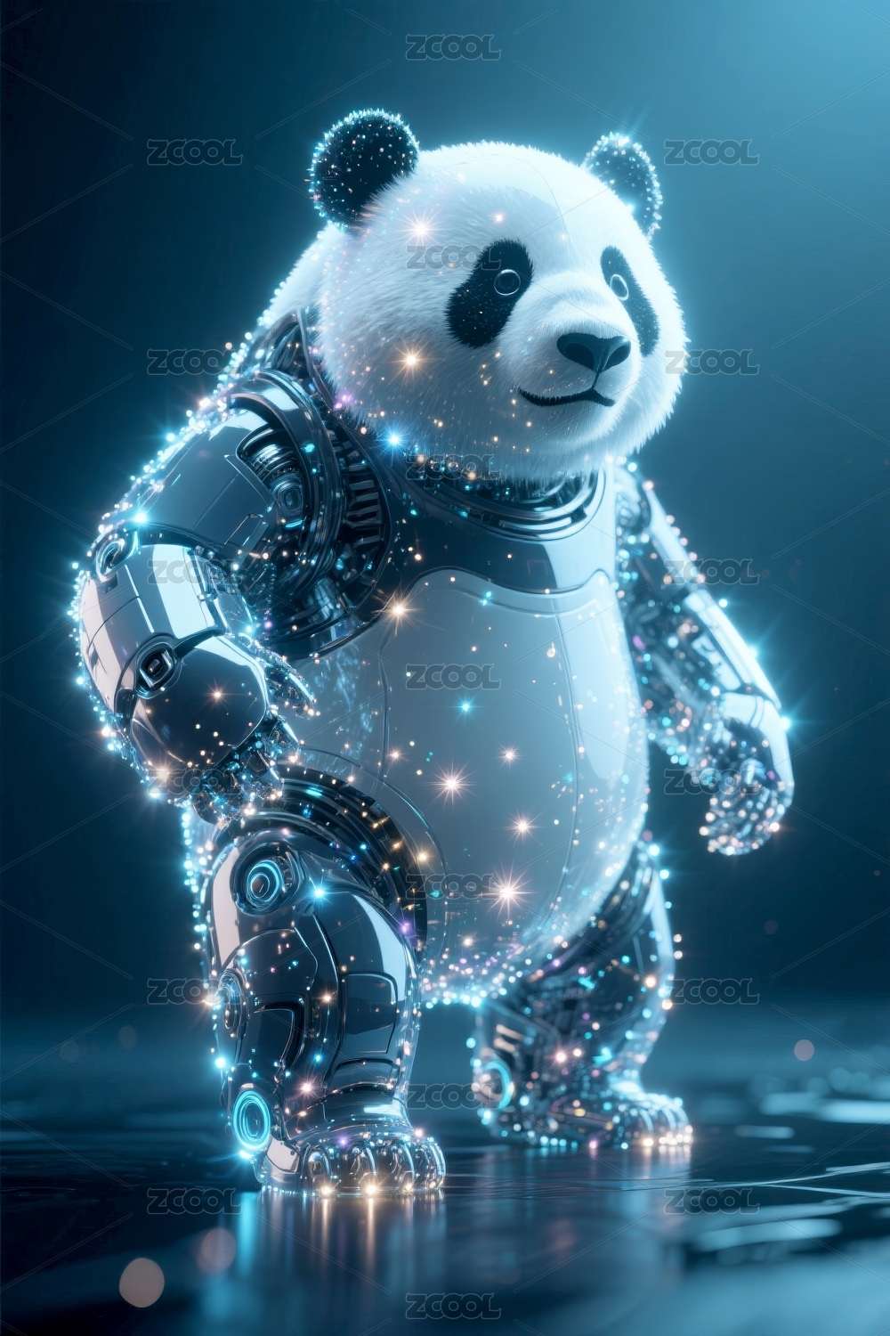 主视觉,科技,熊猫,机械,展示,场景,金属,外观,智能,仿生