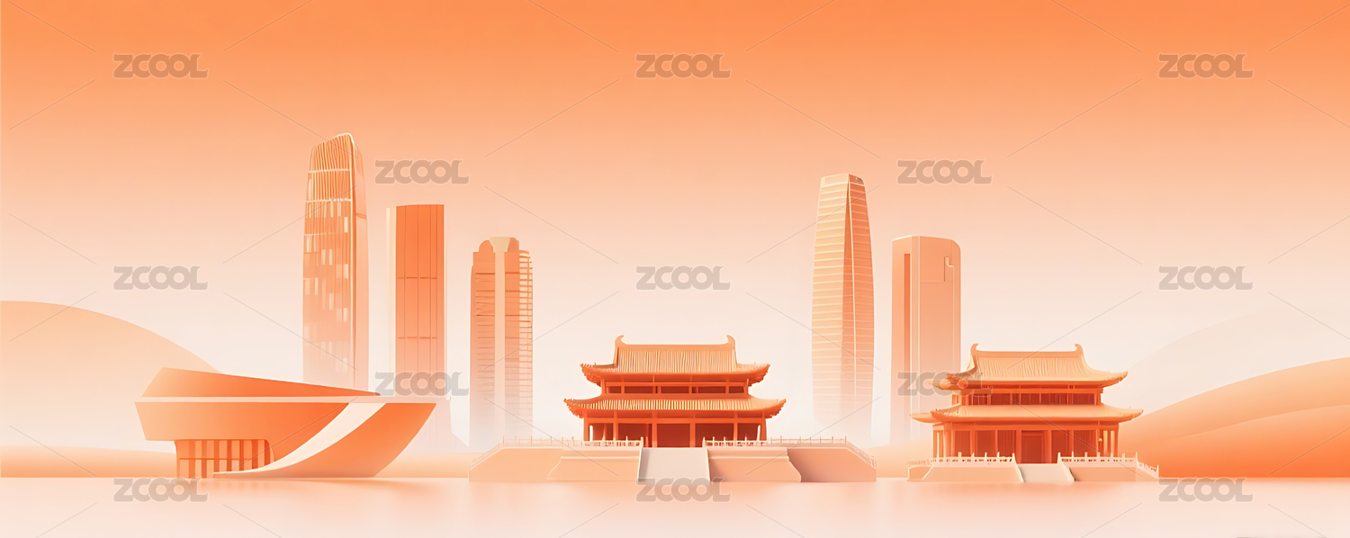 蓝色现代城市建筑和古建筑插画背景壁纸