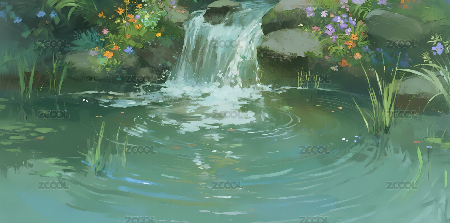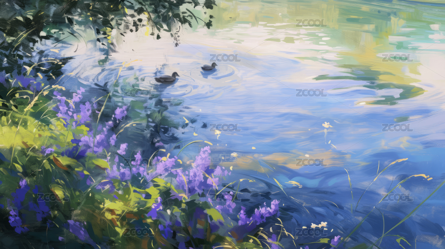 蓝底衬金色秋日溪流植物创意壁纸设计
